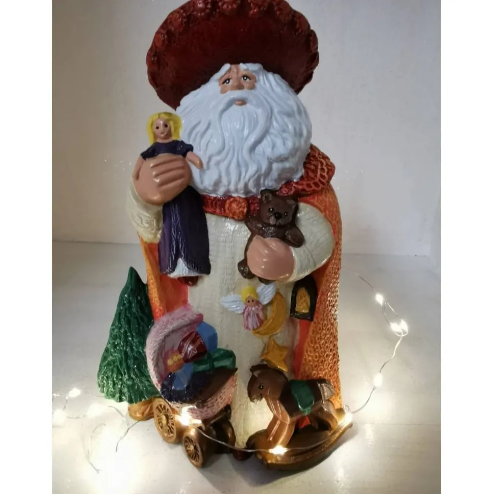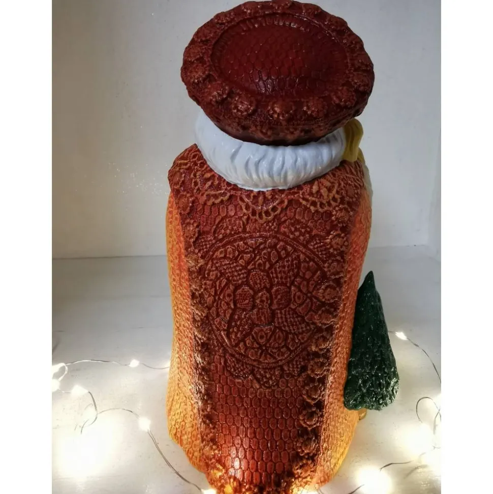 Väterchen Frost ist aus Keramik, ca 24cm hoch und 18cm breit, aufwendig handgemalt und wetterfest versiegelt, kann also draussen stehen, sollte aber vor Frost geschützt werden.