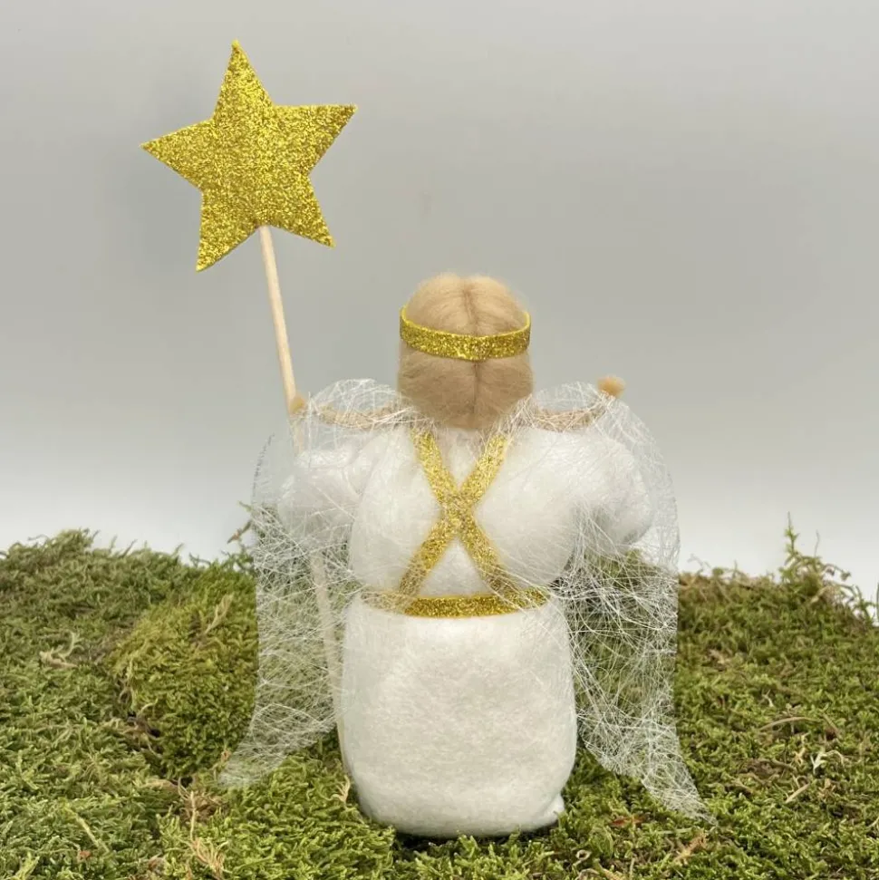 Das Püppchen ist unten geschlossen und für einen guten Stand unten mit feinem Dekokies und der Rest mit reiner, süddeutscher Merinowolle gefüllt.
