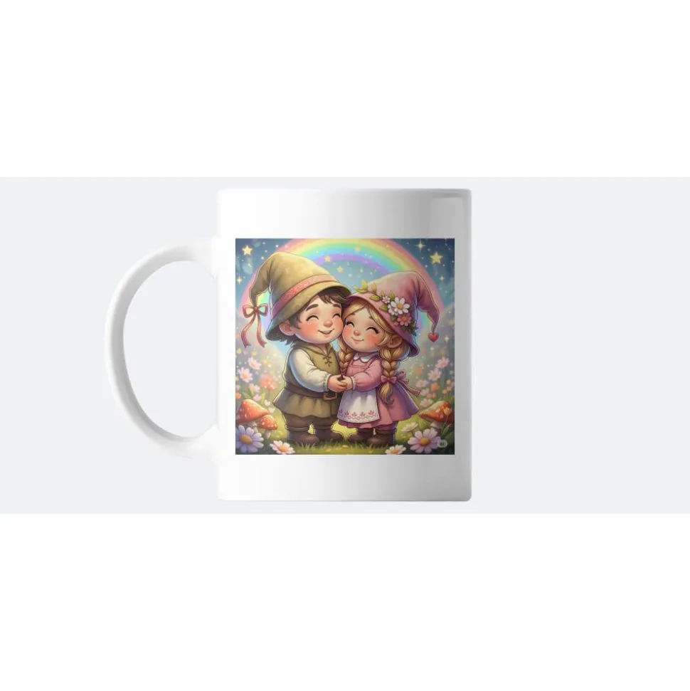 Beginne deinen Tag mit purem Glück! Mit unserem 325ml Keramikbecher bringst du Magie und Freude in jeden Schluck. Das bezaubernde Motiv zeigt ein verliebtes Wichtelpaar, das Händchen hält, umgeben von einem farbenfrohen Blütenmeer und einem leuchtenden Regenbogen – ein traumhaftes Design, das für gute Laune sorgt.