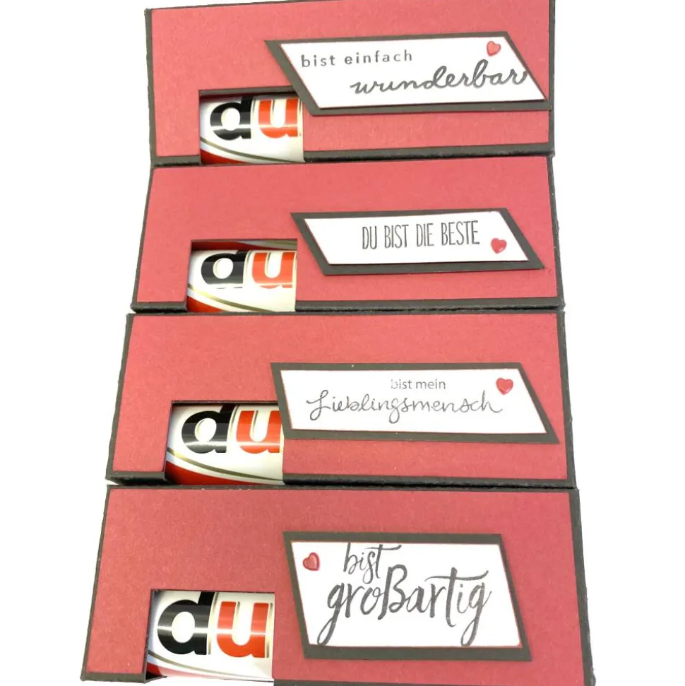 Verschenke Freude mit einer handgemachten Verpackung für 2 Schokoriegel! Diese süße Verpackung eignet sich perfekt als Geschenk, kleine Aufmerksamkeit oder Mitbringsel für einen lieben Menschen. Auch als Tischgoodie macht sie einen tollen Eindruck und sorgt für einen besonderen Moment.