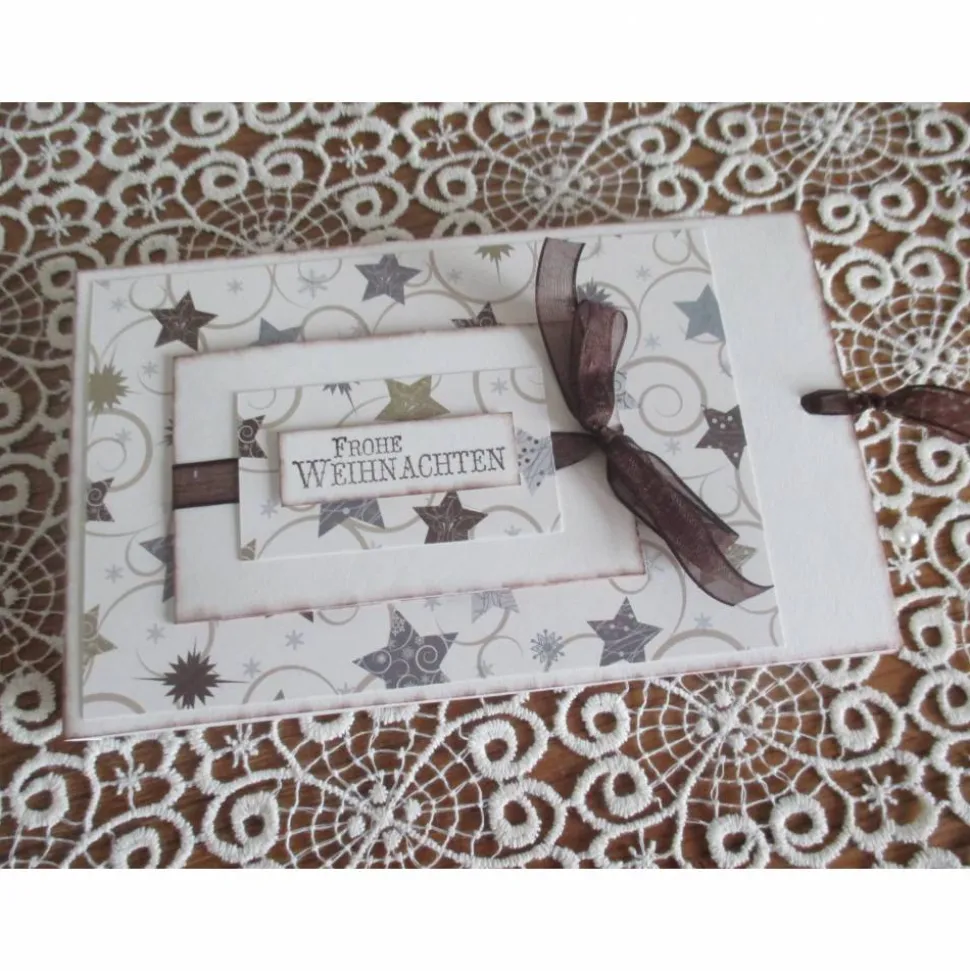 Oft wird Weihnachten Geld verschenkt, so kann man es nett und lecker einpacken. Tolle Karte, die gleichzeitig eine Verpackung für die allseits beliebten Toffeebonbons für die ganze Familie ist. Die Pralinenschachtel kommt zum Vorschein, wenn man rechts an dem Band zieht, dass dann wie ein „Lift“ funktioniert. Die Karte ist auf der Verpackung angebracht, wird mit einem Band verschlossen und bietet wenn man sie aufklappt auf der rechten Seite Platz für persönliche Worte und links hinter dem Dekostreifen Platz für ein Geldgeschenk .
