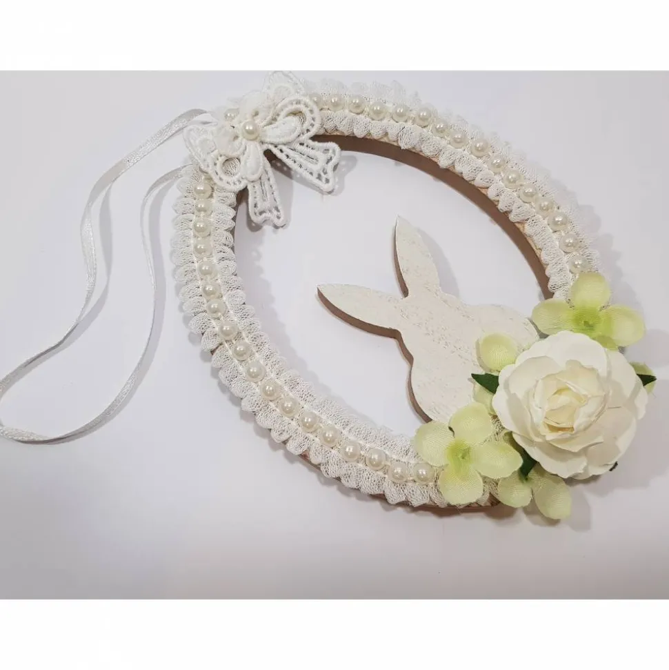 Material : Holz, Spitze, Wachsperlen, Papier-Rosen