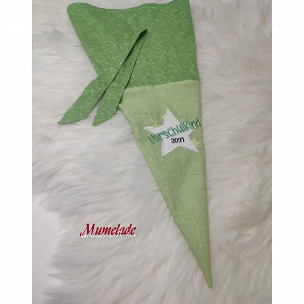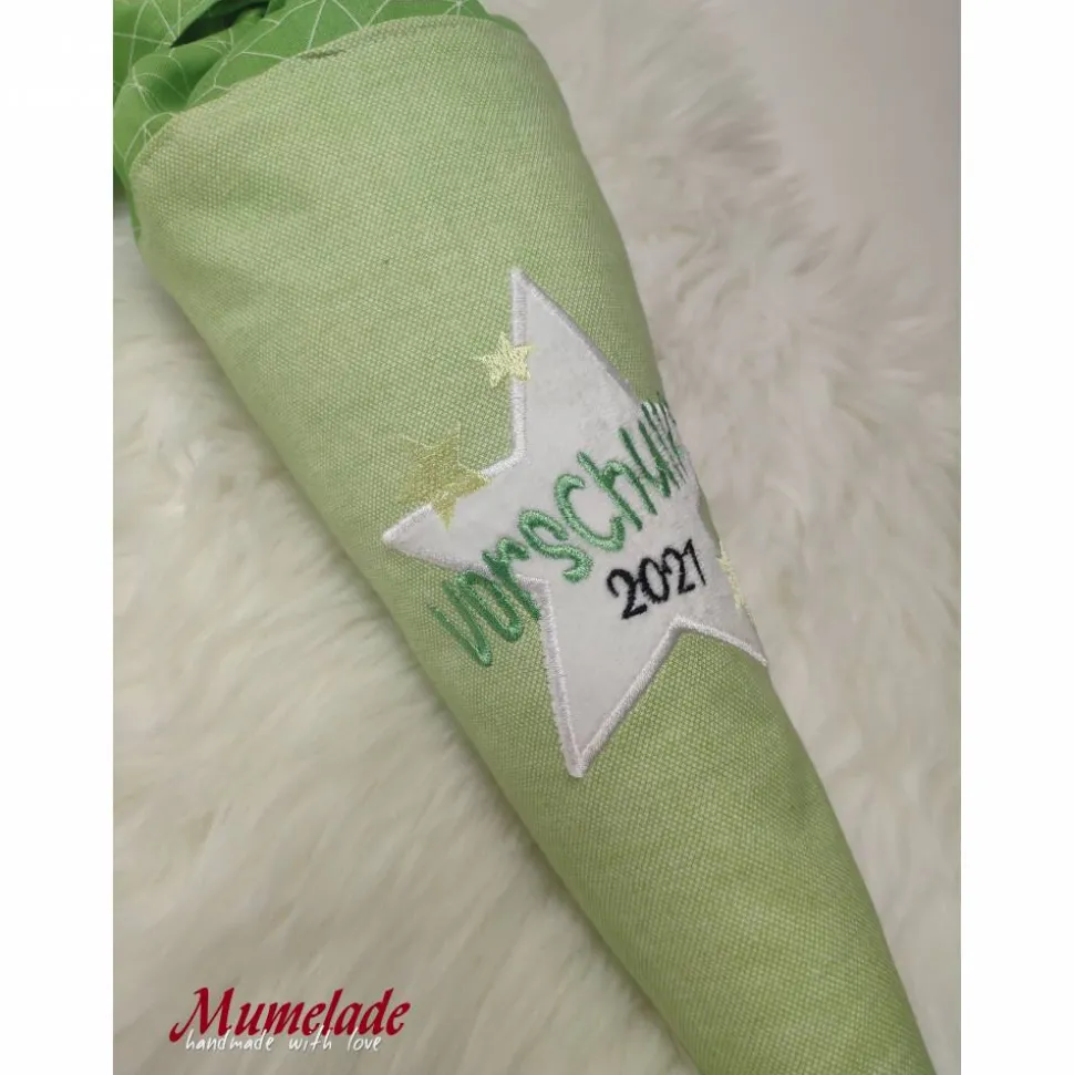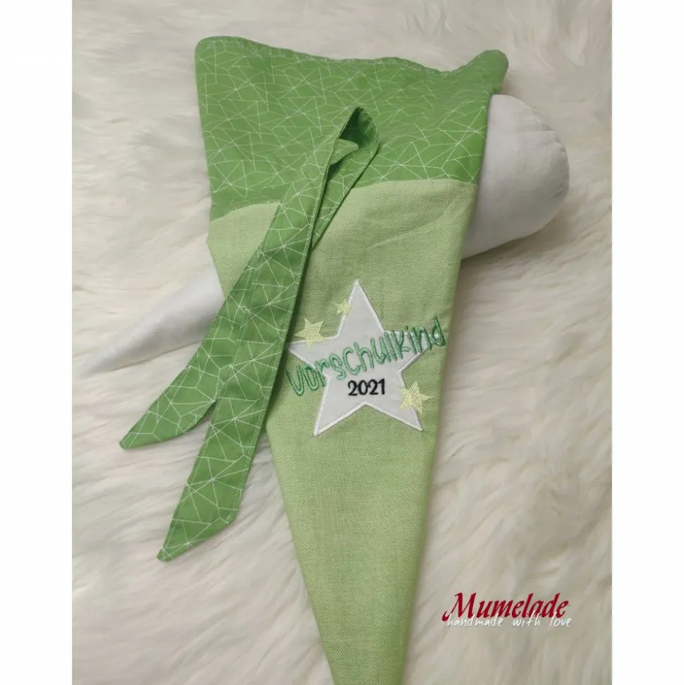 Vorschultüte – Vorschulkind 2021 – grün mit Papprohling und Inlettkissen