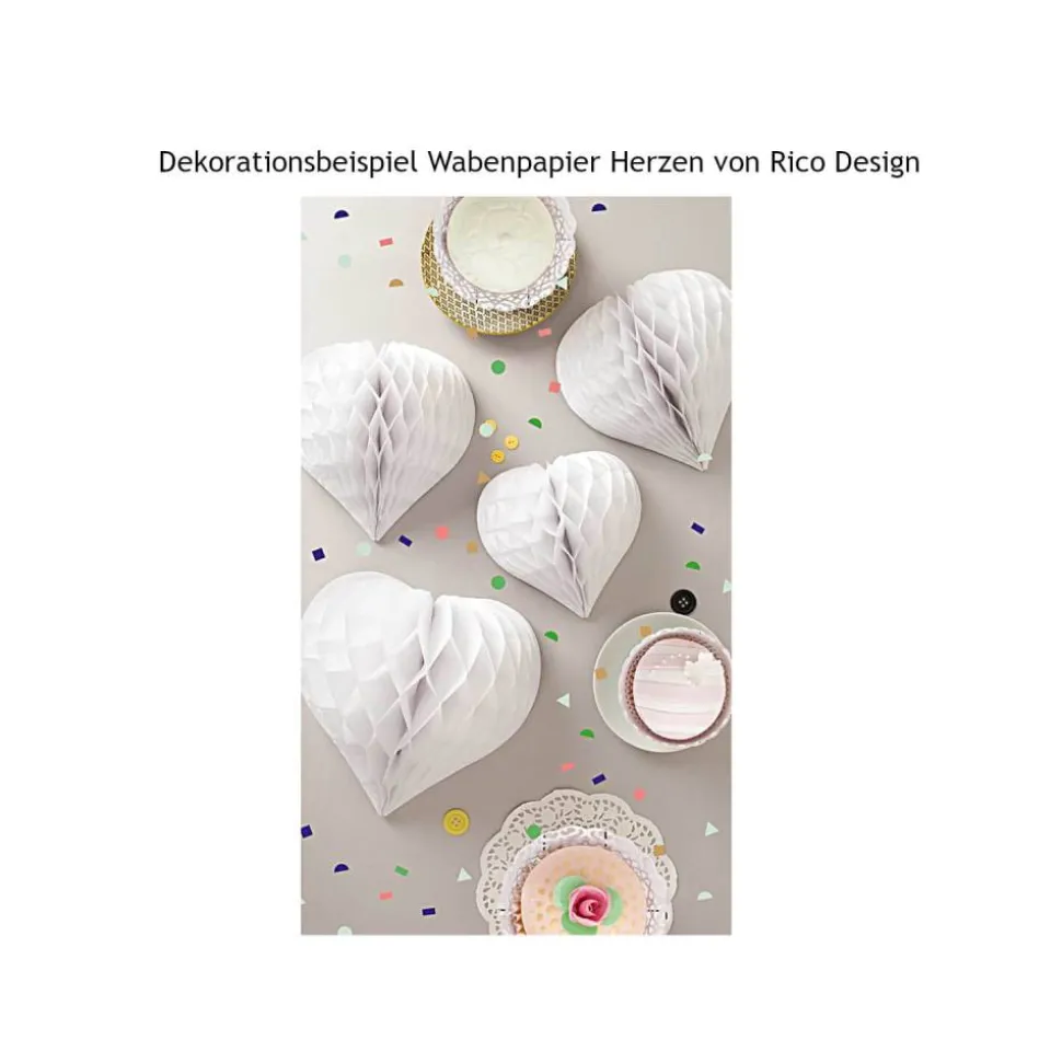 – Anzahl 3 Wabenpapier Herzen weiß