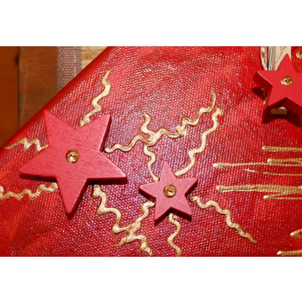 Diese kleine künstlerische Gestaltung hat überall Platz. Der Weihnachtsbaum auf einem Keilrahmen ist nicht groß aber dafür ein echter Hingucker und hat an jeder Wand Platz