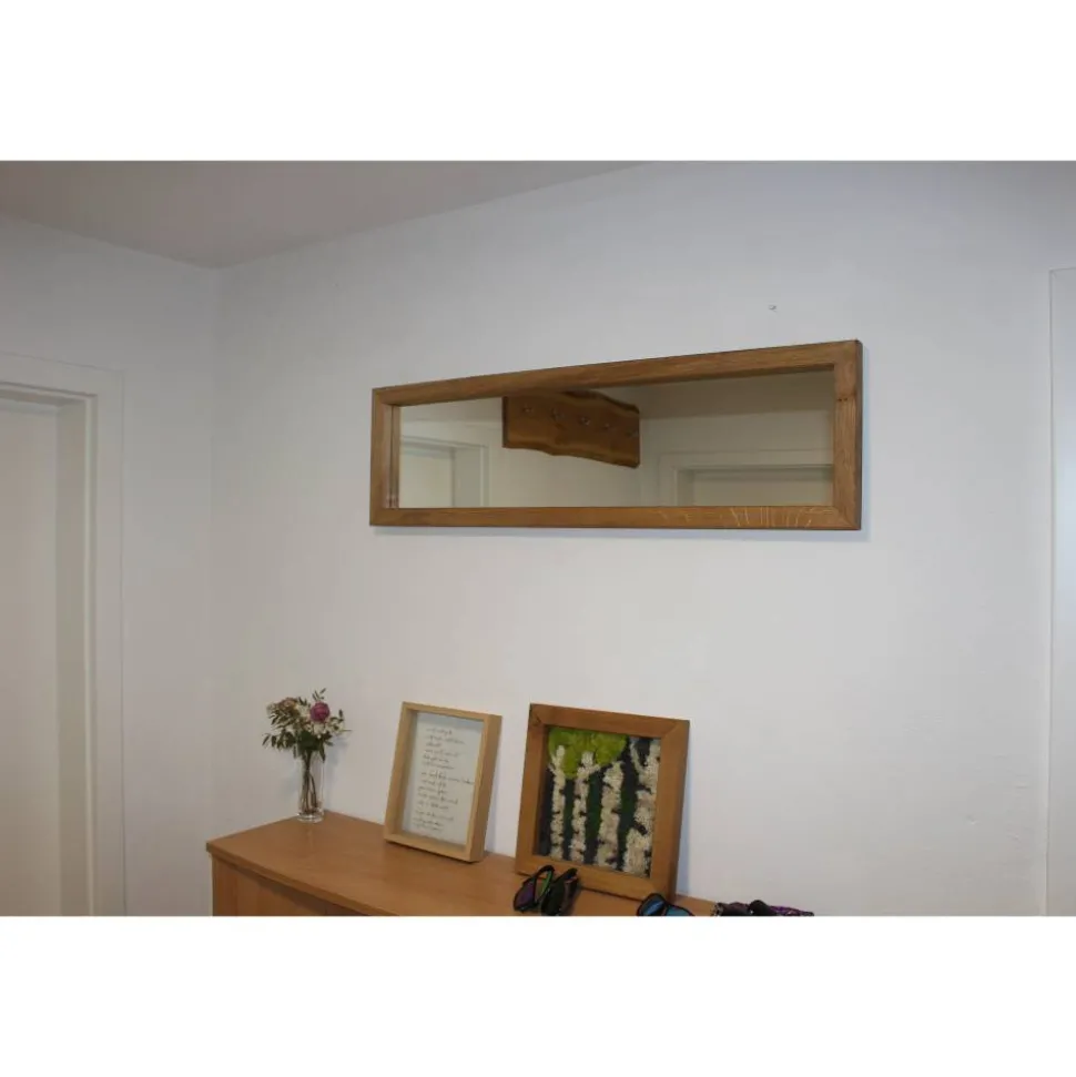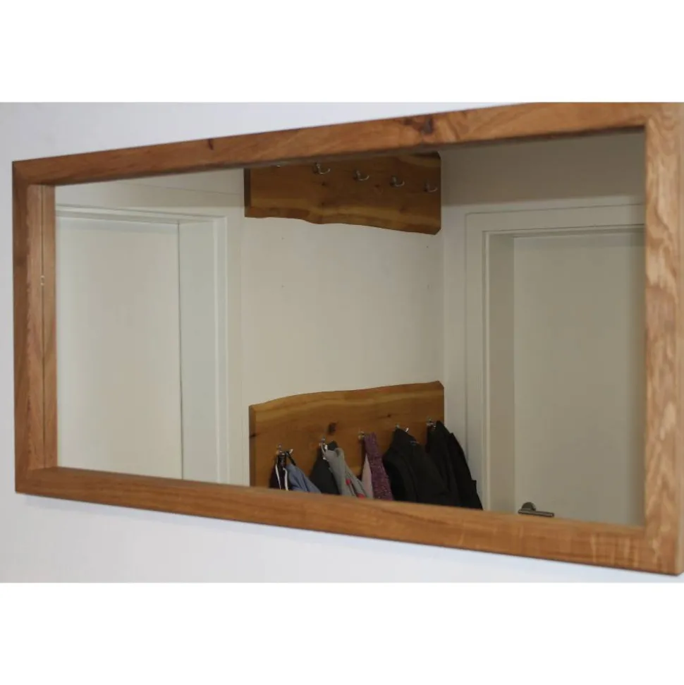 Unser edler Wandspiegel mit massivem Holzrahmen aus Eiche(rustikal oder A/B Qualität) oder Gedämpfter Eiche (Rustikal) setzt stilvolle Akzente in jedem Raum.Ob Flur, Bad, Schlafzimmer oder Wohnzimmer – dieser Spiegel istmehr als nur funktional: Er bringt Wärme, Charakter undNatürlichkeit in Ihr Zuhause.