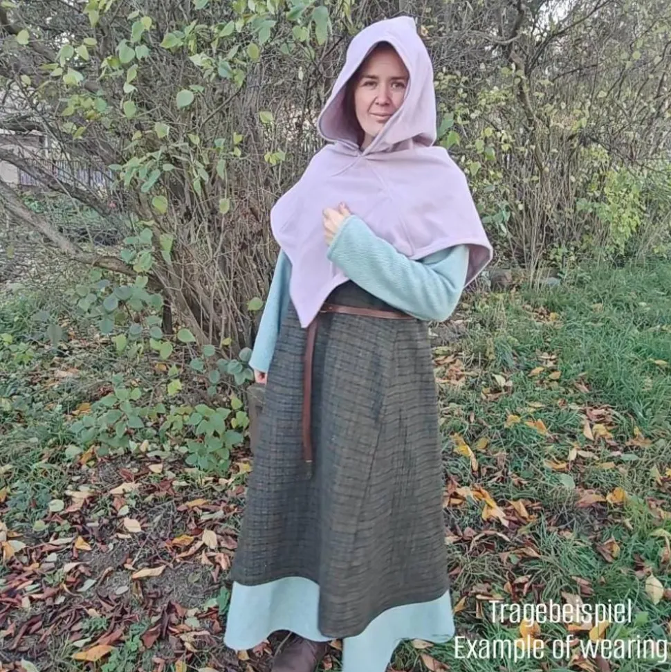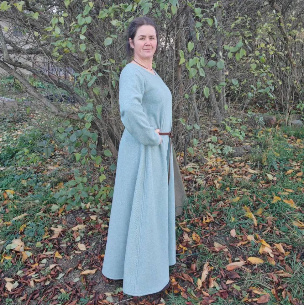 Wunderschönes, warmes Winter Wikinger Kleid aus dickem Wollstoff in salbei und wollweiß – perfekt für kalte Wintertage. Angenehm zu tragendes, weiches Wohlfühlkleidungsstück.