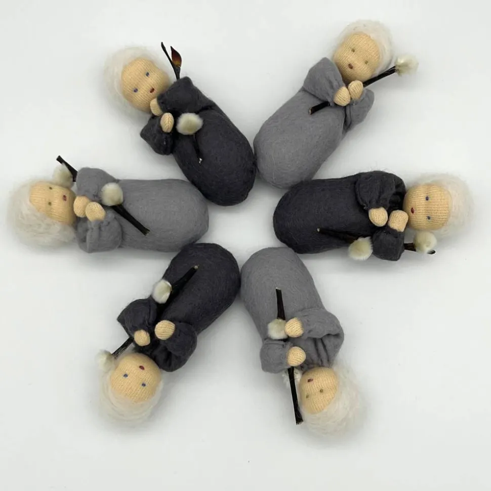 Das Püppchen ist unten geschlossen und mit reiner Schurwolle gefüllt.