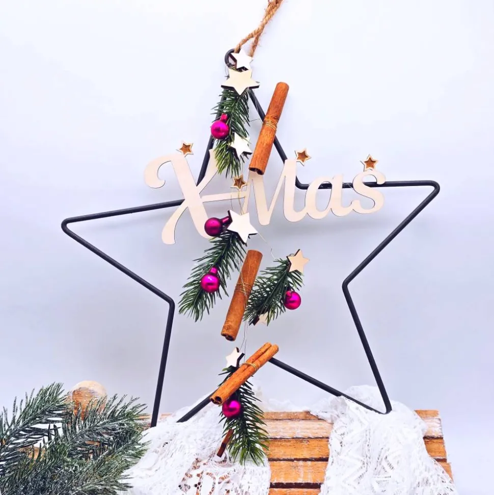 1 x Türkranz Stern Weihnachten mit X-Mas Schild