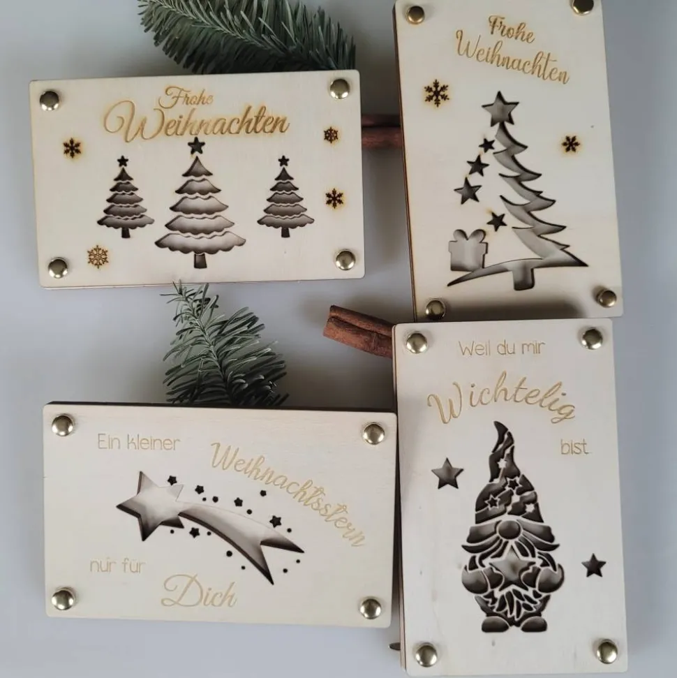Verschenken Sie Geld auf eine edle und originelle Weise mit unserer Holz-Geschenkkarte in verschiedenen Motiven.