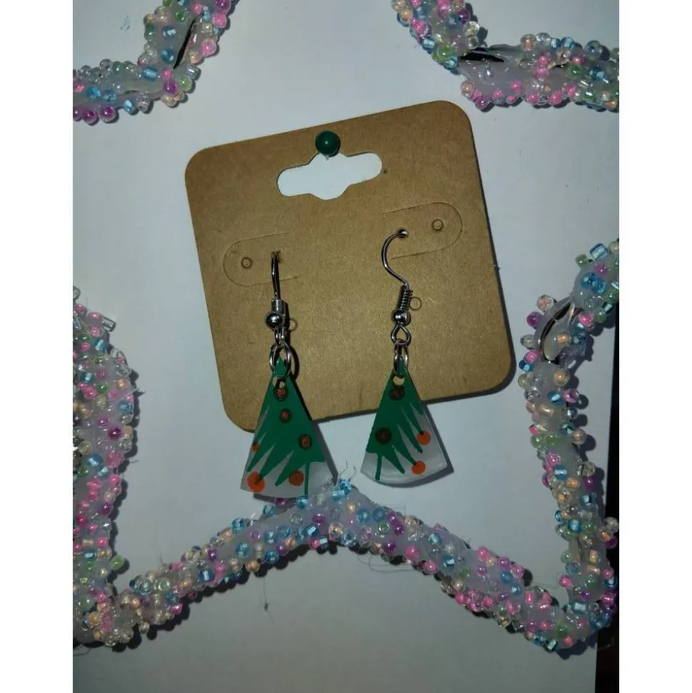 Entdecke einzigartige Ohrringe mit Tannenbaum Motiv Anhänger und bringe festlichen Glanz in dein Outfit. Diese handgefertigten Ohrringe aus Kunststoff Schrumpffolie sind ein echter Hingucker zu Weihnachten. Der geteilte Tannenbaum mit Kugeln macht die Ohrringe zu einem originellen Schmuckstück für die festliche Saison.