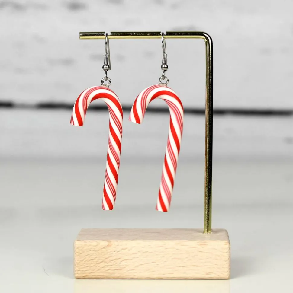 Die entzückenden handgefertigten Zuckerstangen-Anhänger bestehen aus hochwertigem Polymer Clay. Sie baumeln an schlichten Ohrhaken aus Edelstahl.