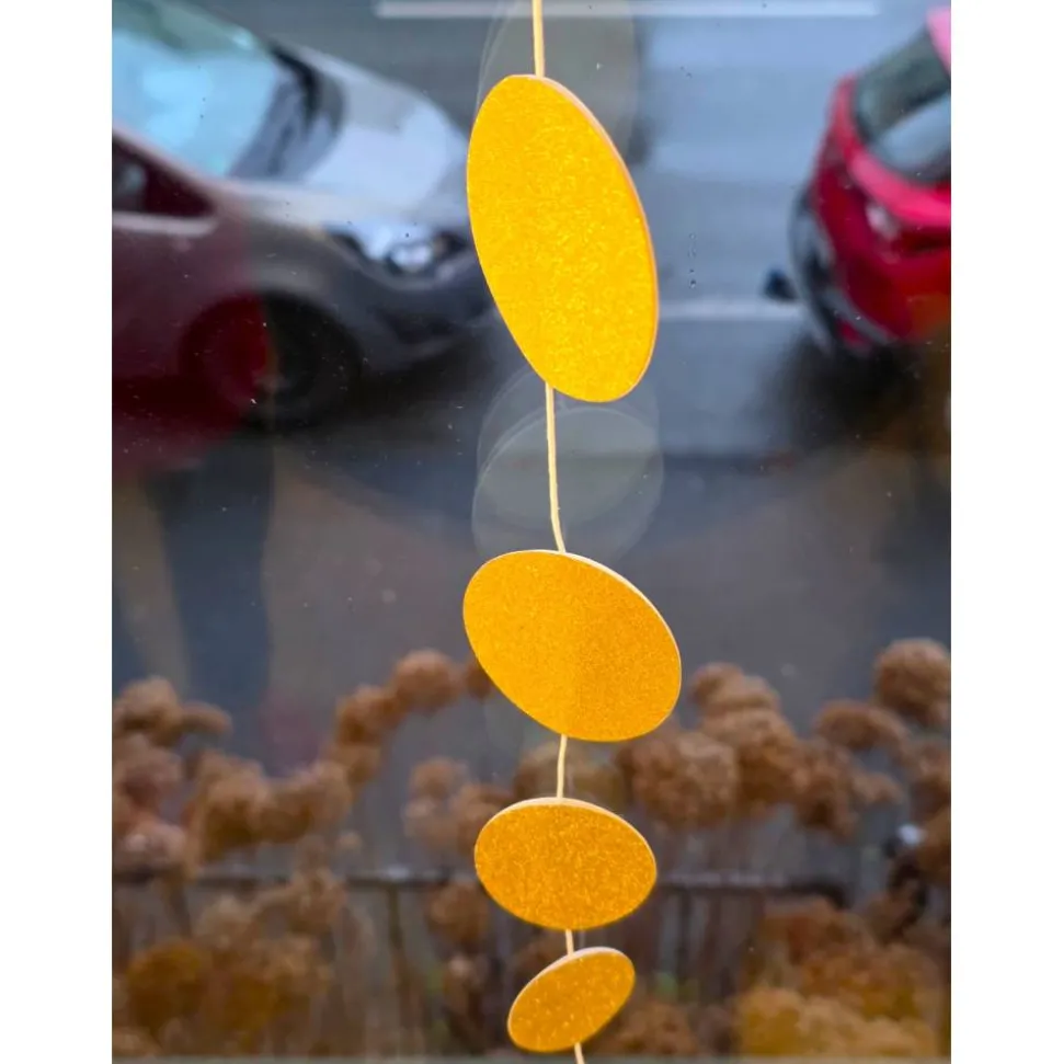 Glitzernde Weihnachtsdekoration – ,, Frohe Weihnachten´´ Anhänger. Ein Eleganter Blickfang für die festliche Jahreszeit. Diese vertikale Hängedekoration besteht aus acht sorgfältig ausgeschnittenen Kreisen aus hochwertigem 250 GSM Glitzerpapier, doppelt verklebt für extra Stabilität und ein luxuriöses Finish.