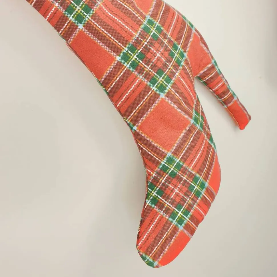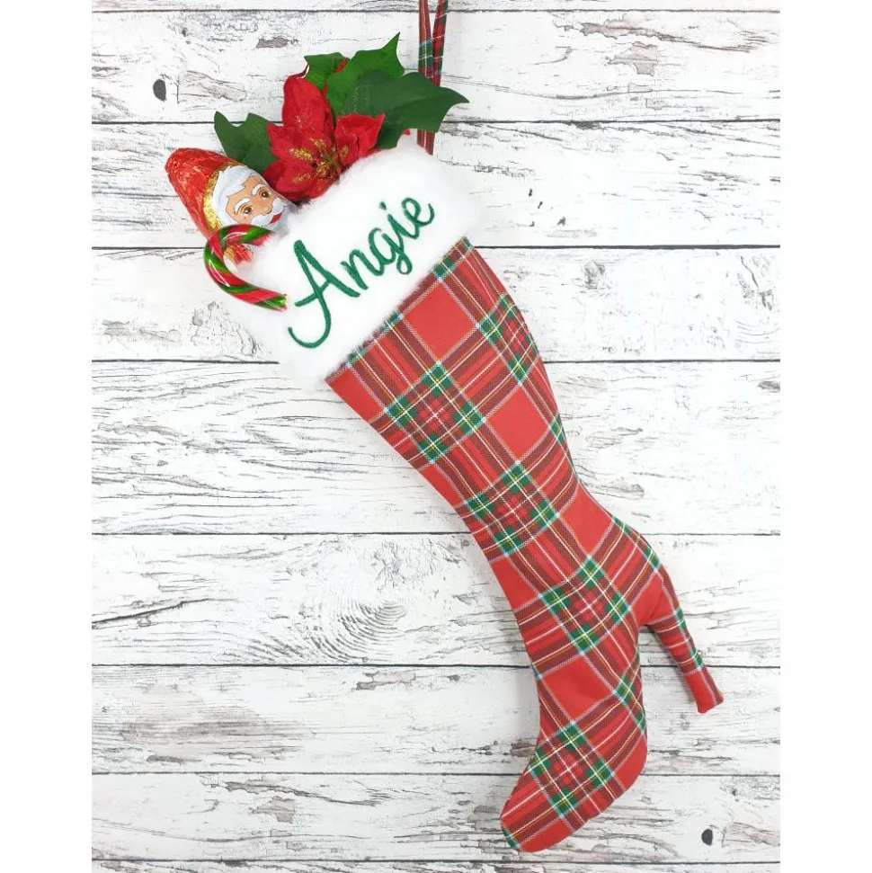 Du kannst deinen High Heel oder deine Socke durch einen gestickten Namen in roter oder grüner Schrift personalisieren.