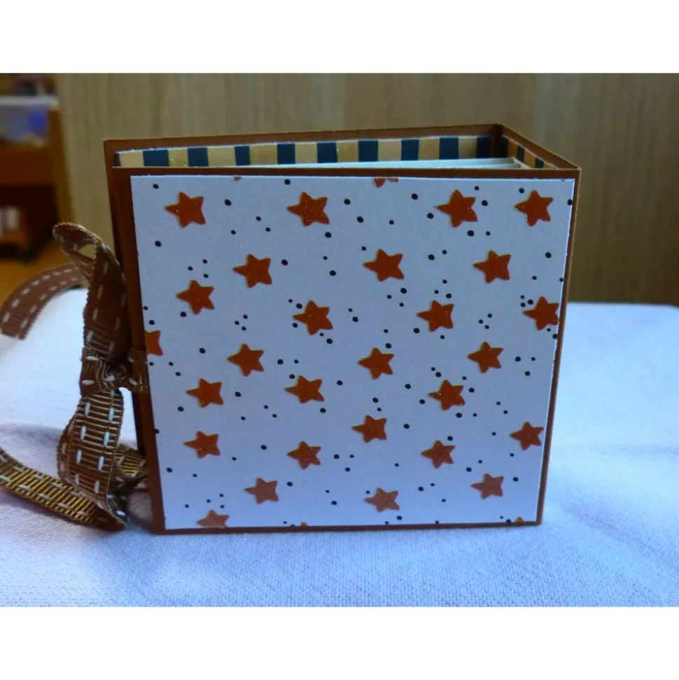 Gefertigt ist dieses Buch aus Karton.Ein hübsches Satinband ist zum Verschließen angebracht.