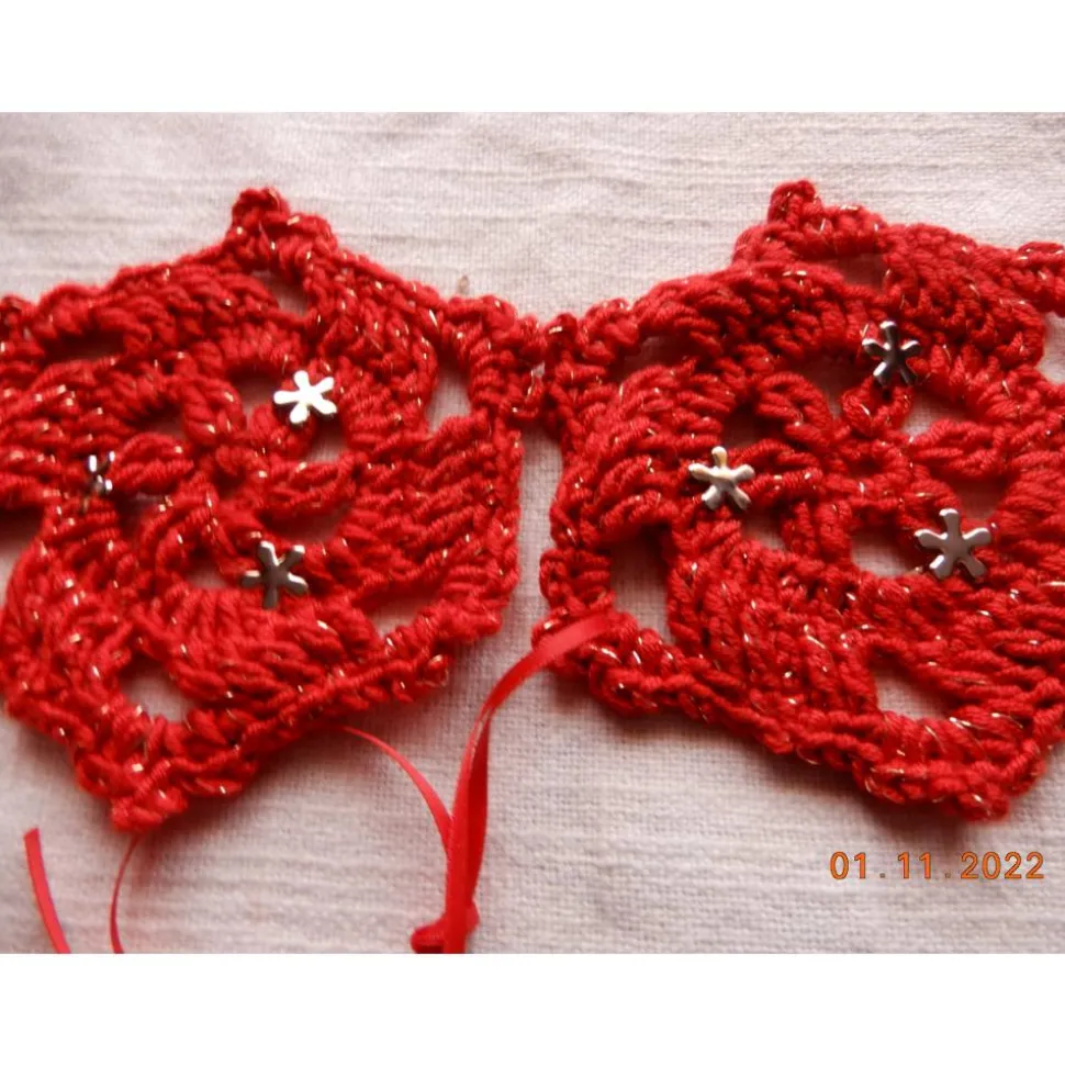 Das Set besteht aus 11 kleinen runden handgehäkelten Anhänger mit passenden Satinband zum aufhängen.
