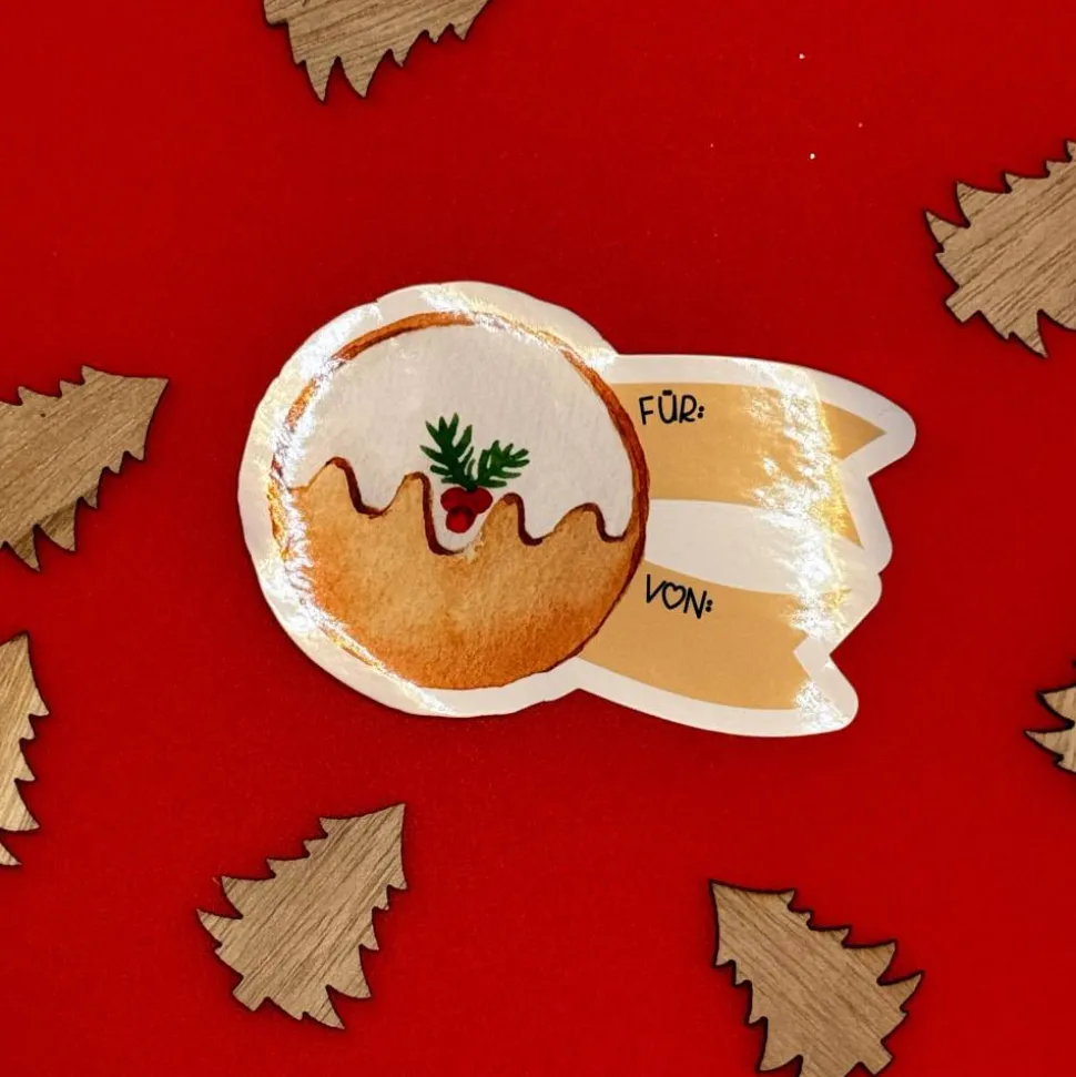 Vinyl-Geschenketikett, ca. 6 × 9 cm (H × B), weiße Vinylklebefolie, beschreibbar, Konturschnitt, Kunstdruck nach Originalillustration, handgefertigt, Lieferumfang: 1 Sticker