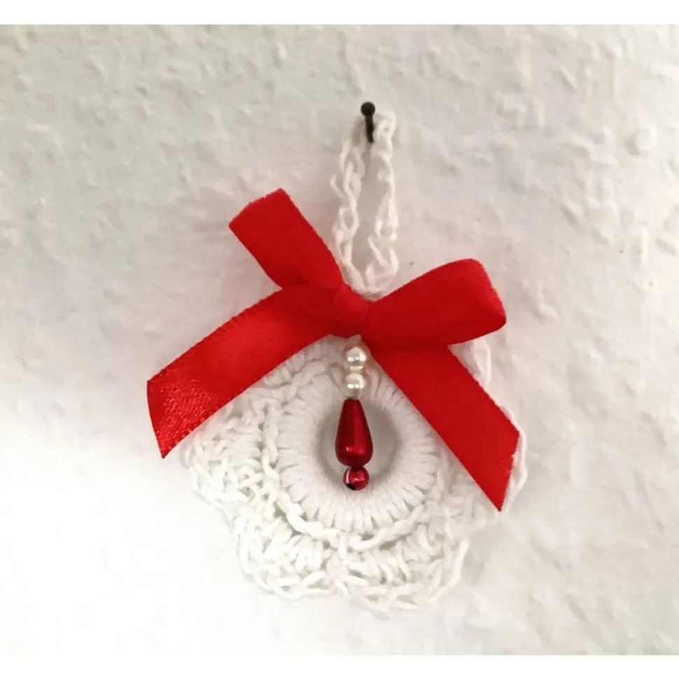 Das liebevoll angefertigte Häkel-Kränzchen ist ein tolles, weihnachtliches Dekorationsobjekt. Auch als Geschenke-Anhänger kann das handgehäkelte Kränzchen genutzt werden. Es ist ein wunderschöner Blickfang für die festliche Dekoration in der Advents- und Weihnachtszeit.