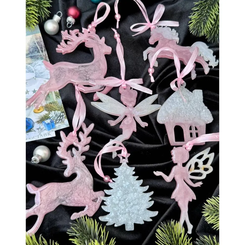 Bringe festlichen Winterzauber an deinen Weihnachtsbaum! Diese handgefertigten Weihnachtsanhänger aus hochwertigem Epoxidharz verwandeln deine Weihnachtsdeko in ein märchenhaftes Highlight. Wähle zwischen Rentier, Fee, Tanne, Märchenhaus oder Pferd – jedes Ornament ist ein Unikat und mit liebevollem Detail von Hand gegossen.
