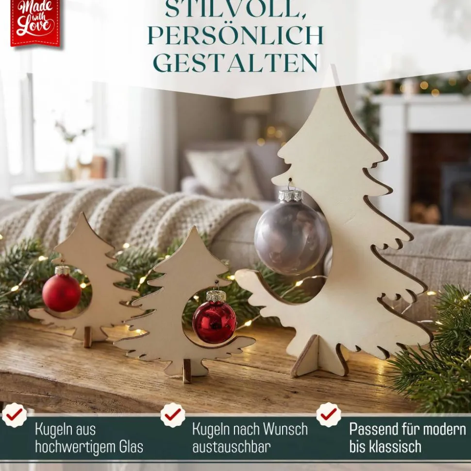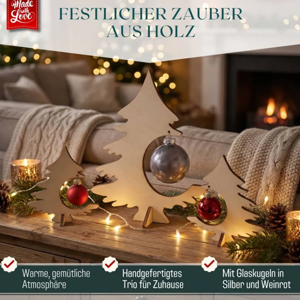 Das Set eignet sich als saisonale Holz Weihnachtsdeko für verschiedene Wohnbereiche. Durch die natürliche Optik fügt sich die Dekoration in unterschiedliche Einrichtungsstile ein und unterstützt eine warme, gemütliche Atmosphäre in der Weihnachtszeit.