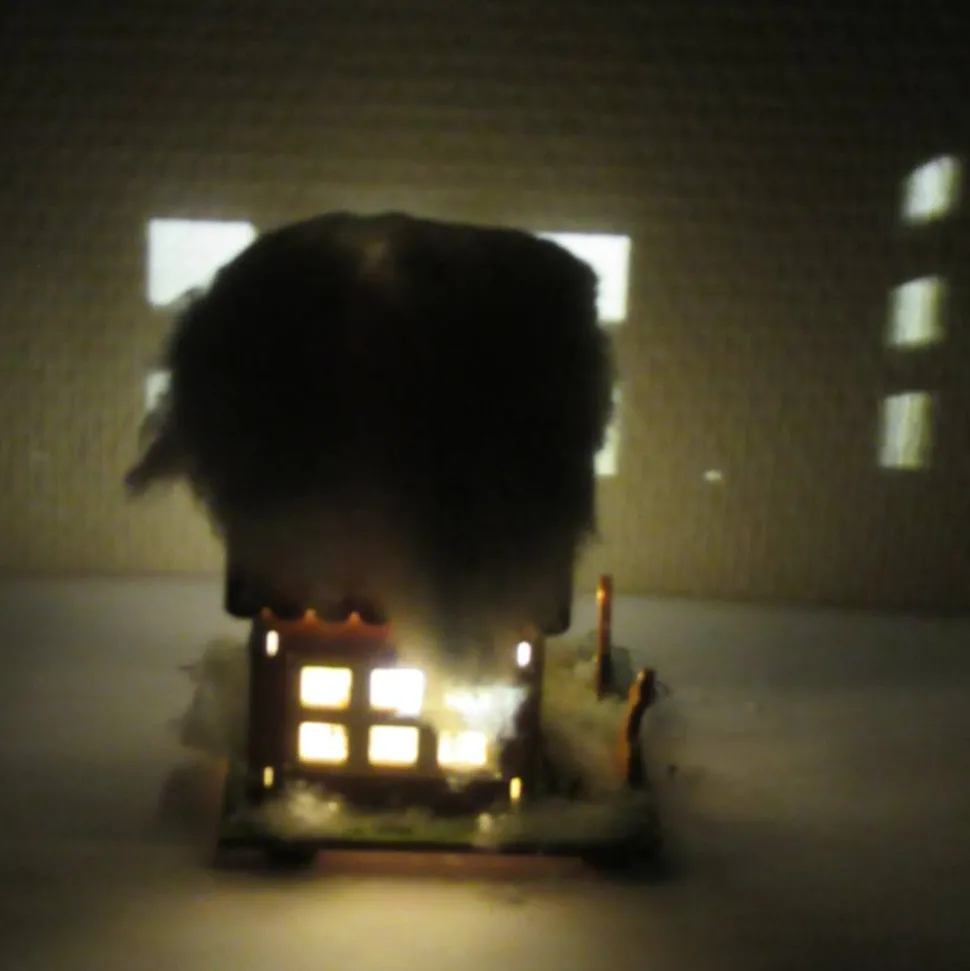 Es wurde handbemalt und mit Kunstschnee beklebt.