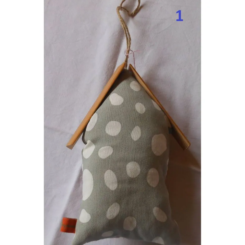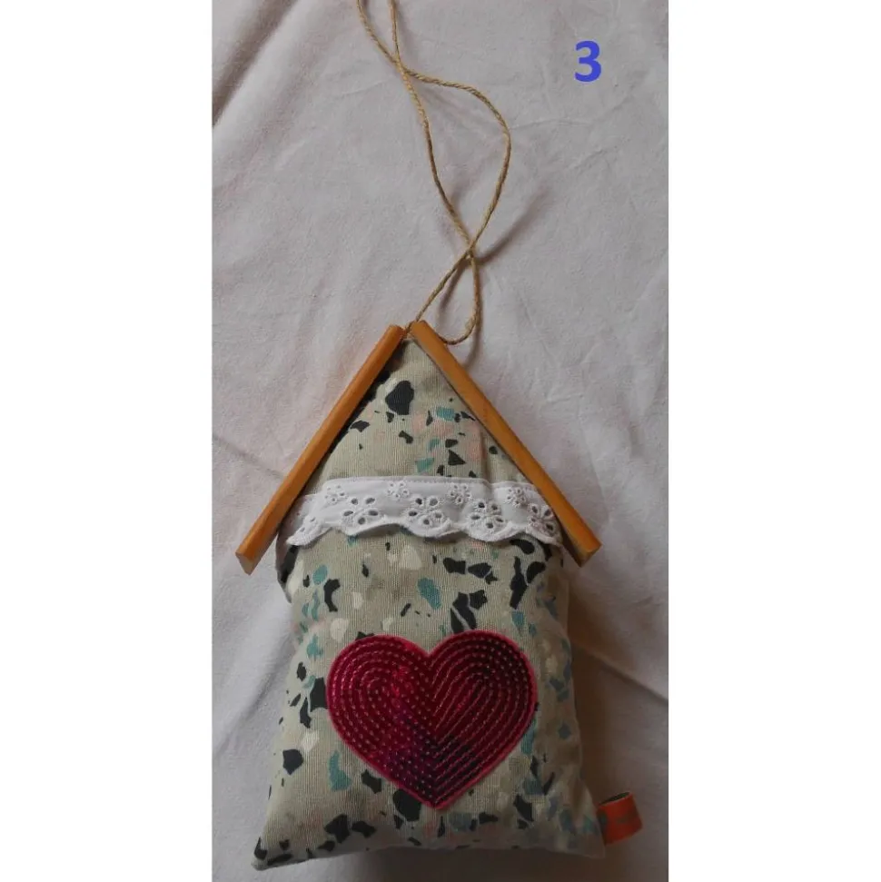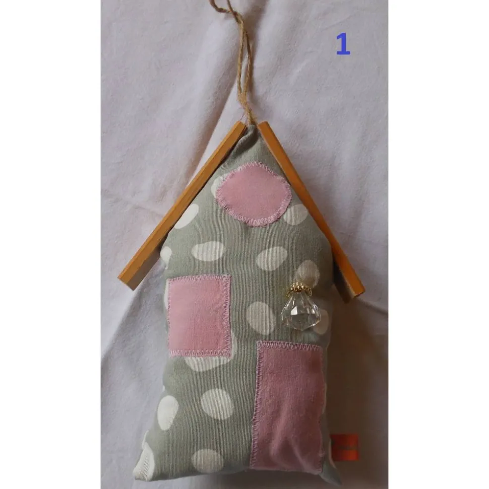 Das Dekohaus ist mit Polyesterfüllwatte gefüllt und besitzt ein Dach aus Holzleisten. Die Vorderseite ist liebevoll gestaltet: Mal mit aufgenähten Fenstern und Türen, mal mit Paillettenherz und Spitzenborte oder einem kleinen Glasglöckchen. Dank der Maße von ca 23x14x5cm (LxBxT) passt dieses Häuschen perfekt an Tür, Wand oder Fenster und setzt einen besonderen Akzent in jedem Raum.