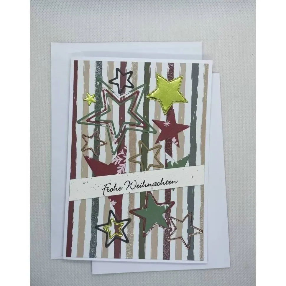 Die Karte wurde aus hochwertigem 210 g schweren Kartenkarton von mir hergestellt, mit einem Topper versehen und mit Stanzteilen dekoriert.
