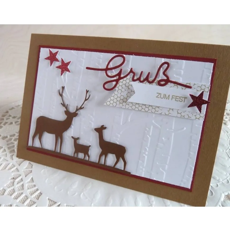 gestempelt, gestanzt, ausgeschnitten, geprägt, geklebt,