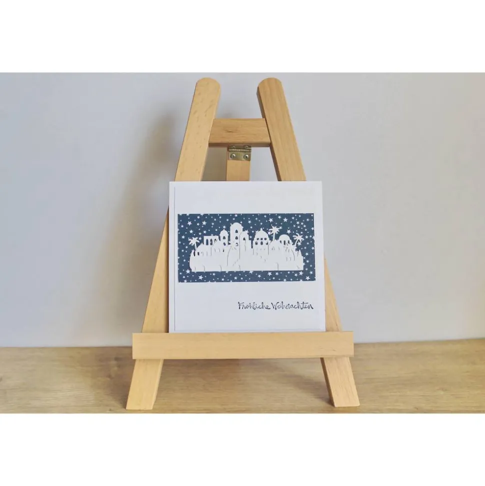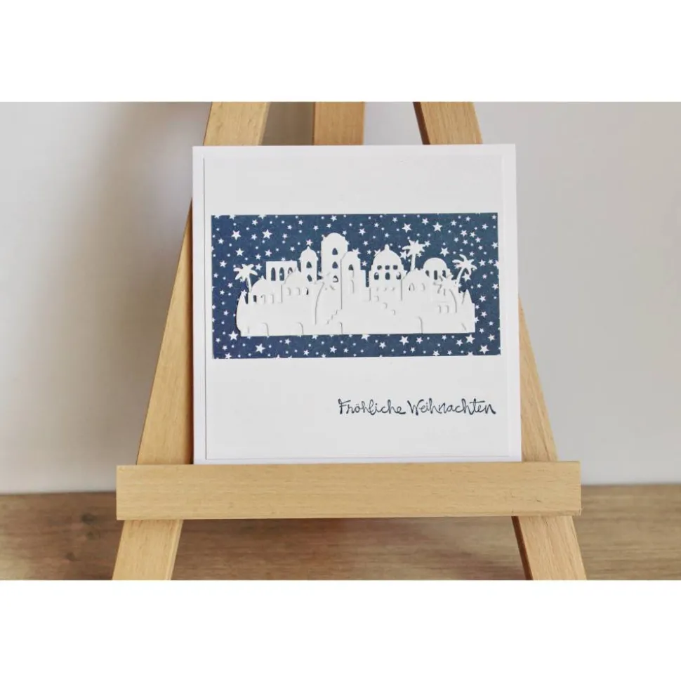 Jede Karte wird sorgfältig von Hand gefertigt, wodurch jedes Exemplar ein Unikat ist. Die Verwendung hochwertiger Materialien garantiert eine hervorragende Qualität. Das Format der Karte bietet ausreichend Platz für persönlichen Worte. Die Karte wird zusammen mit einem passenden Umschlag geliefert.