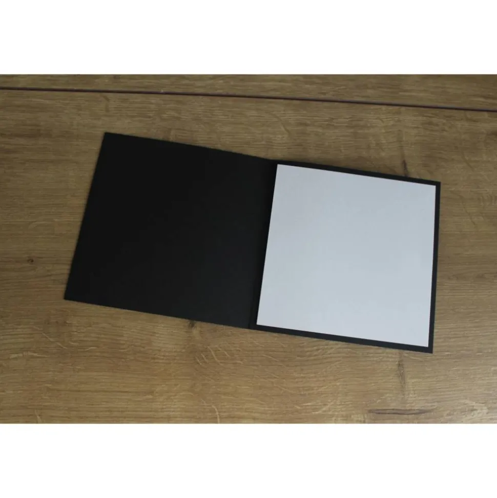 Zum einfachen Beschriften ist die rechte Innenseite der Klappkarte mit einem cremefarbenen, leicht strukturierten Papier beklebt. Der Umschlag ist weiß.