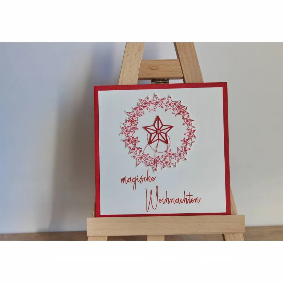 Das Ganze wurde auf einem hochwertigen, strukturierten Papier gestempelt und von Hand zugeschnitten.