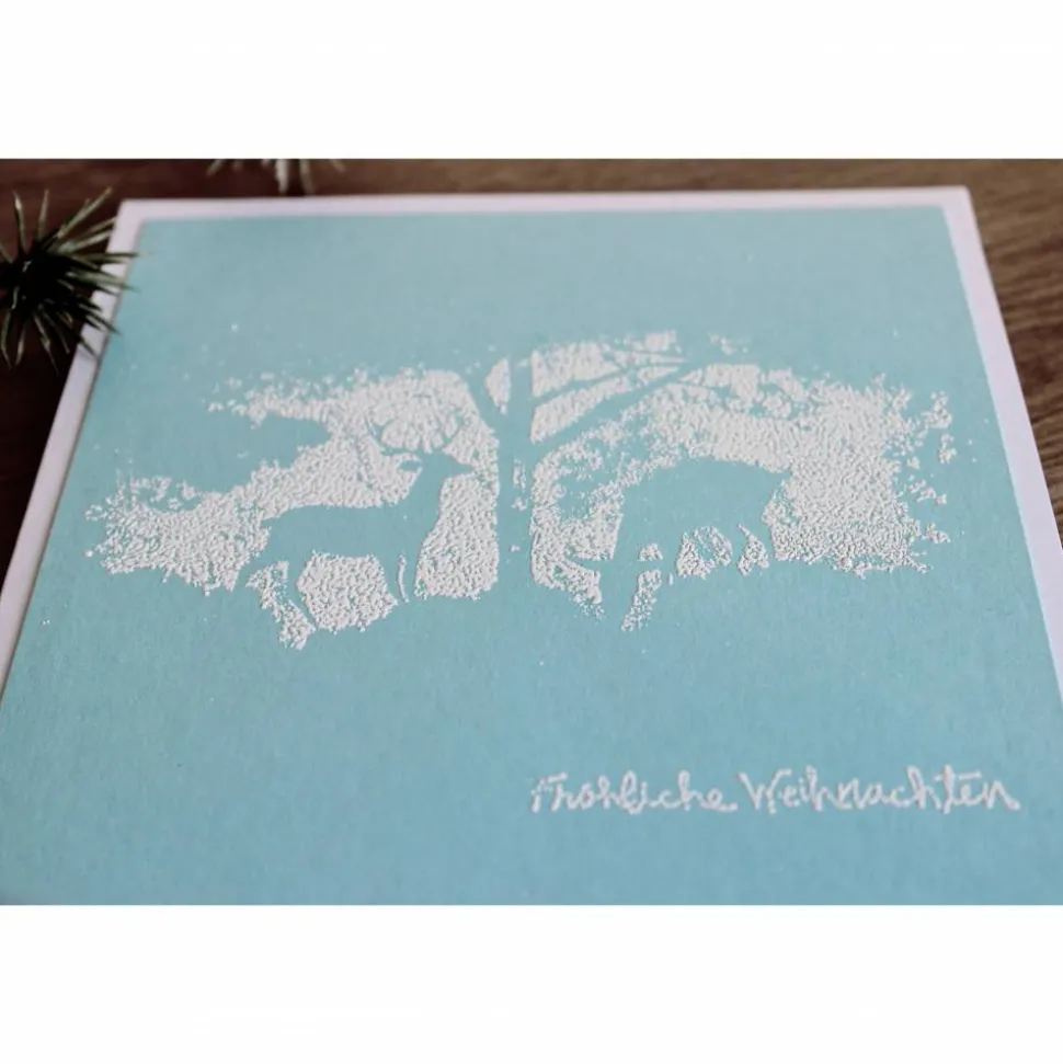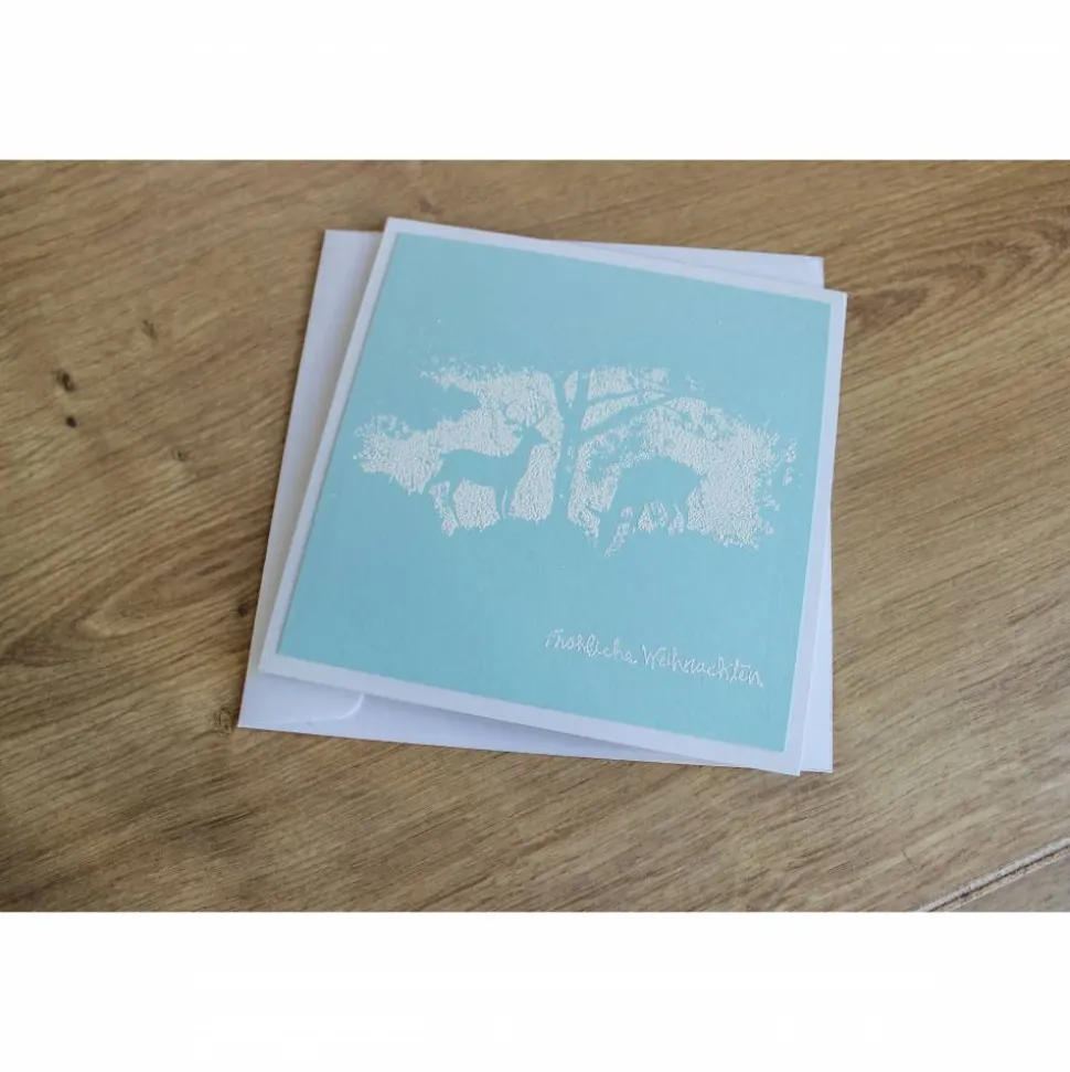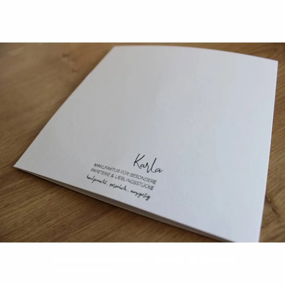 Jede Karte ist ein handgemachtes Unikat und weist daher farbliche Unterschiede zur dargestellten Karte auf. Die Farbschattierungen reichen von einem zart zu dunklem türkis.