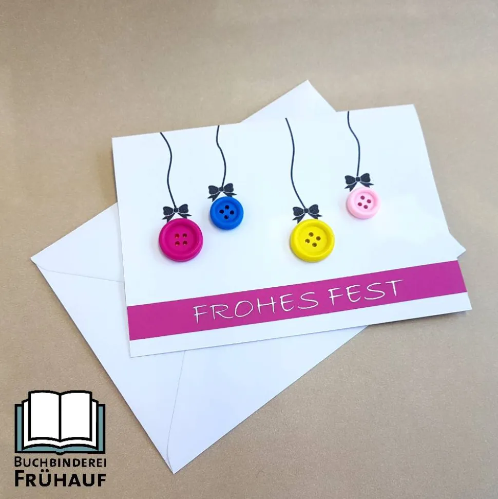 Weihnachtskarte mit Knöpfen pink oder rot