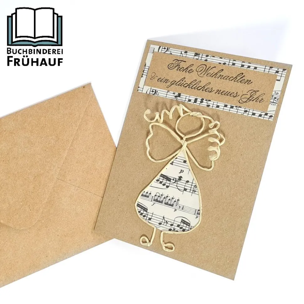 Den Engel habe ich aus Papierdraht gebogen. Unterklebt ist er mit italienischem Buntpapier mit Noten.