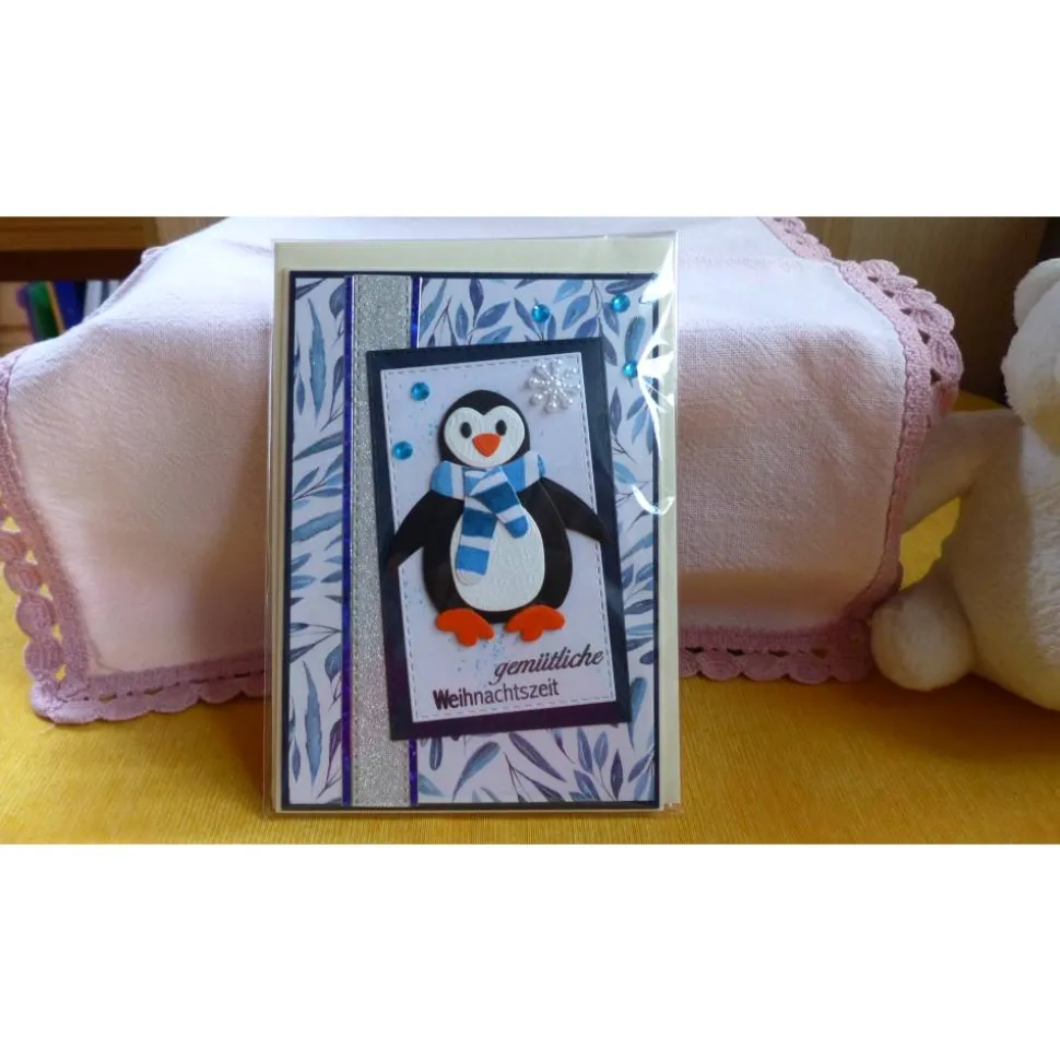 verziert mit einem süßen Pinguin,Sternen und Schneeflocken