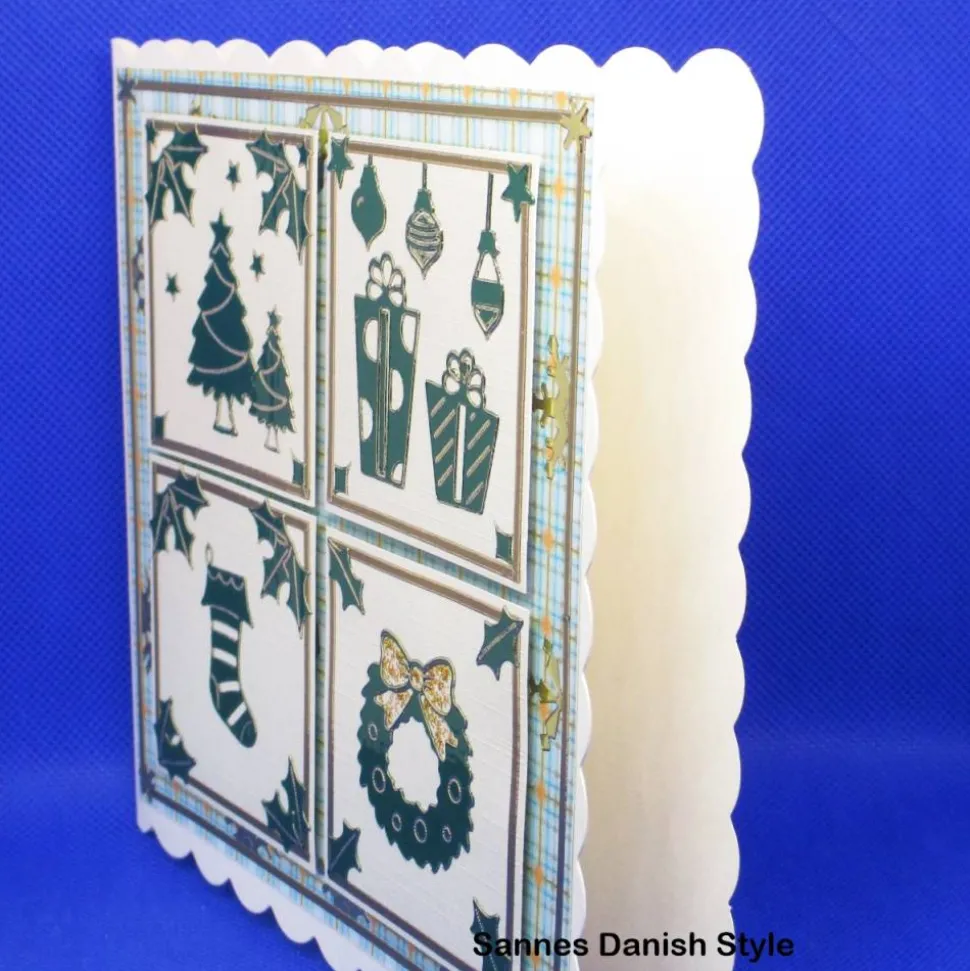 Verschenke Freude zu Weihnachten mit einer einzigartigen Weihnachtskarte mit Sticker Motiven! Die Karte ist in den festlichen Farben grün und beige gestaltet und misst ca. 15 x 15 cm. Auf der Vorderseite findest du liebevoll arrangierte Weihnachtsbäume, Stiefel, Geschenke und einen Kranz – kreativ umgesetzt mit Motiven von JEJE Produkt.