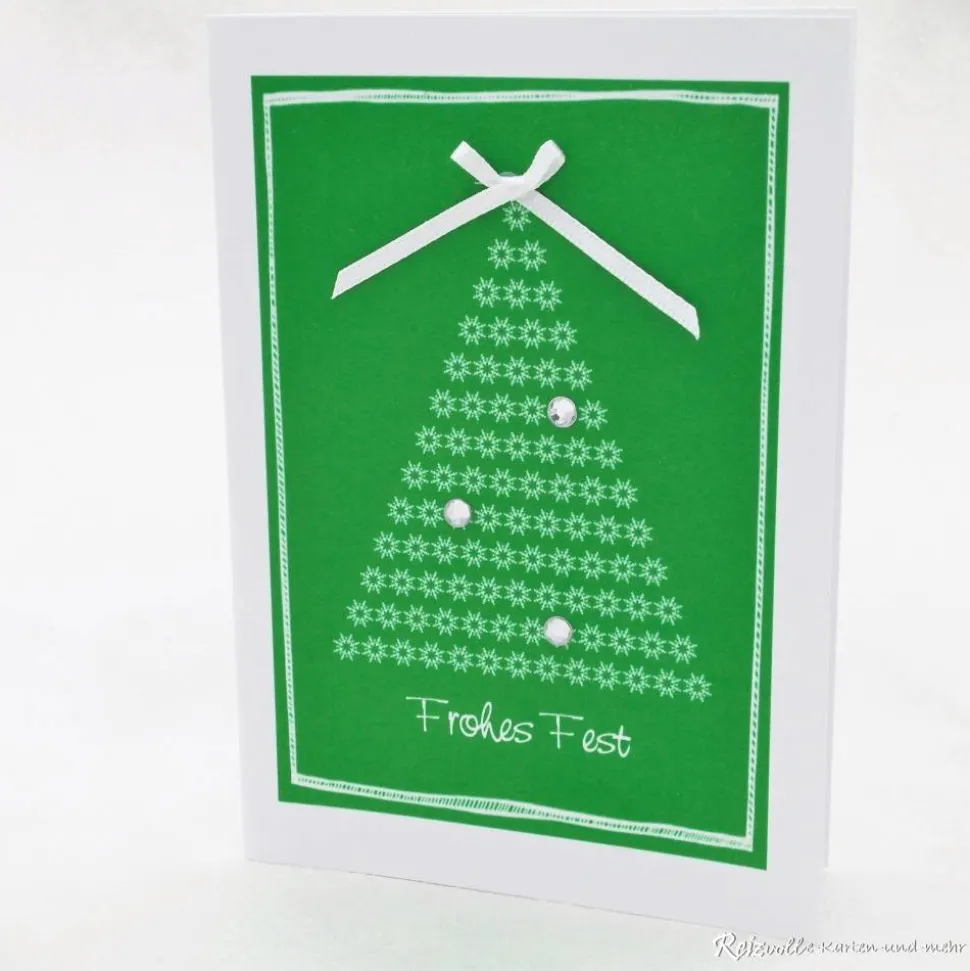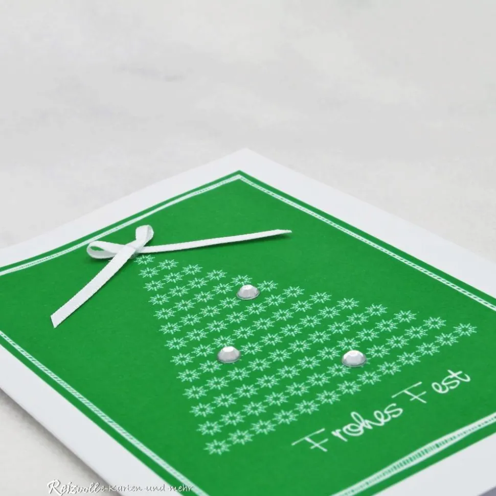Der Weihnachtsbaum ist mit 3 Schmucksteinen und einer Satin-Schleife geschmückt. Die Position der Schmucksteine kann abweichen.