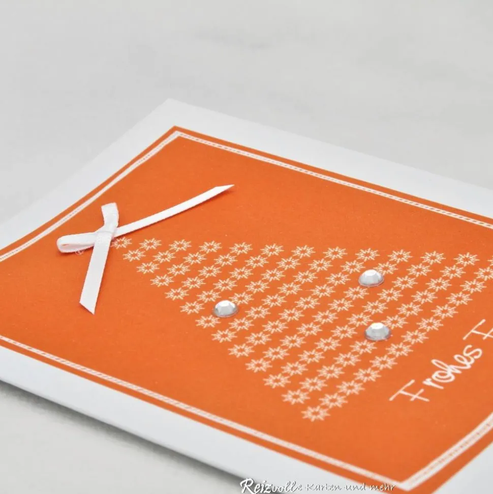 Der Weihnachtsbaum ist mit 3 Schmucksteinen und einer Satin-Schleife geschmückt. Die Position der Schmucksteine kann abweichen.