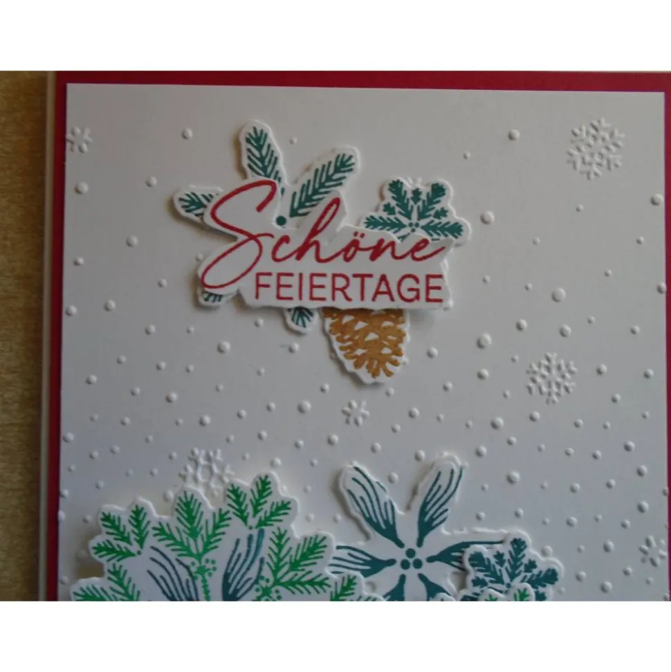 Hier seht ihr eine schöne Weihnachtskarte mit Tannenzweigen…