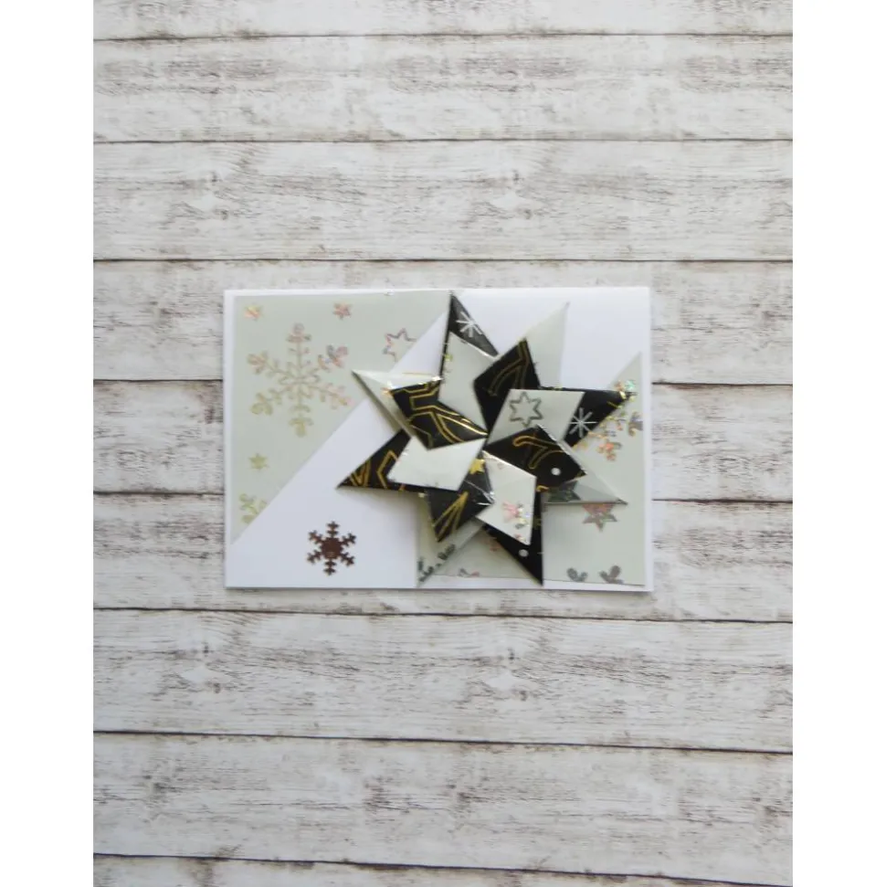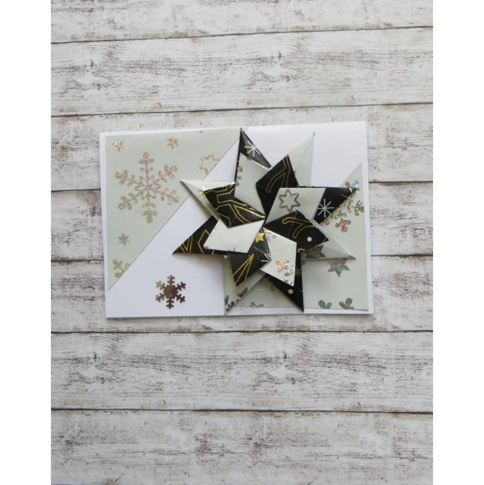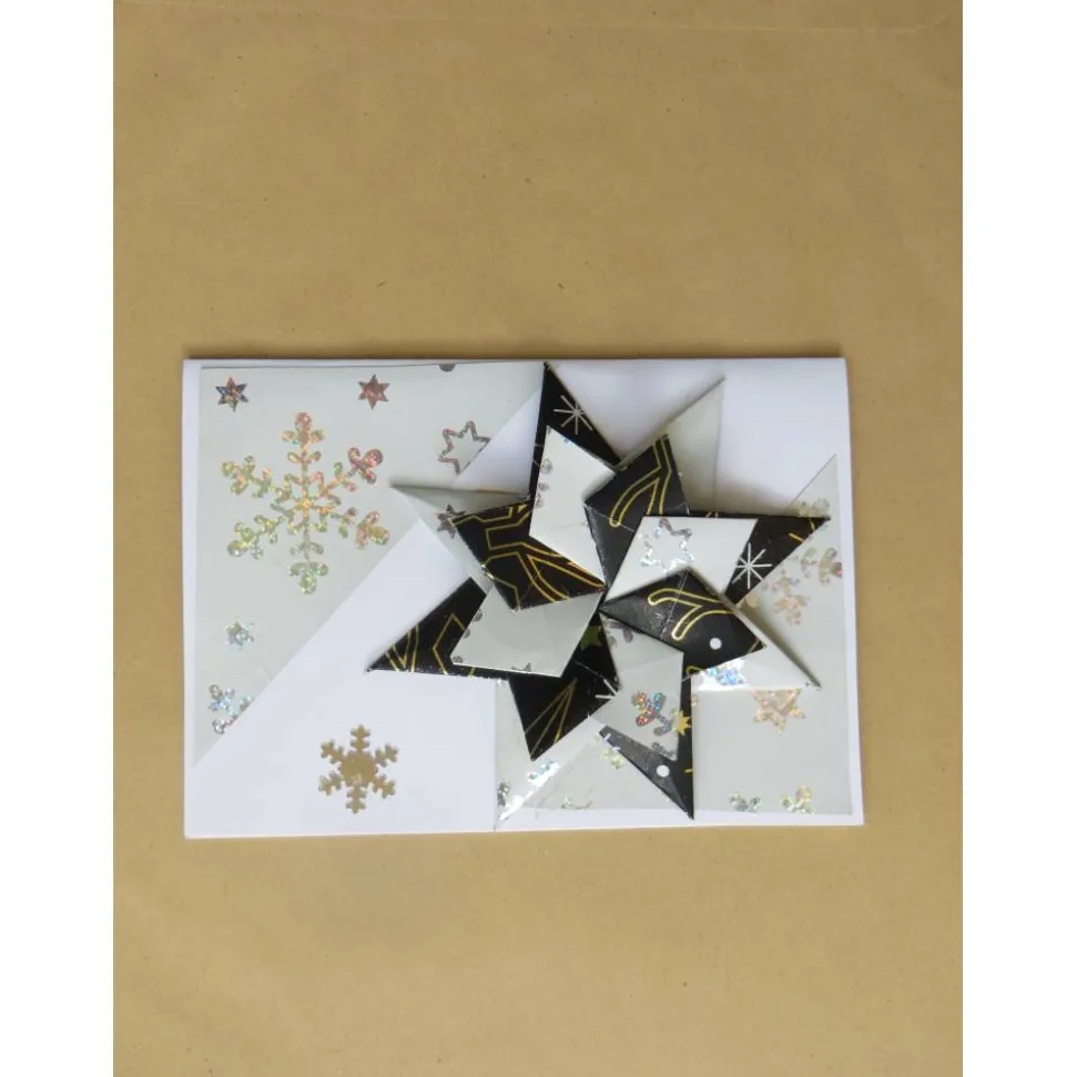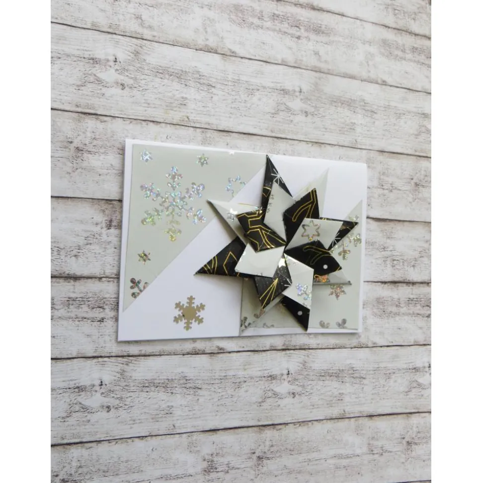 Eine Weihnachtskarte mit einem handgearbetet selbgemachten Stern in 3d Design. Weihnachtsgrüße mit einem großen Weihnachtsstern in schwarz, weiß und silber. Grüße zu Weihnachten mal andres mit einer solch edel gestalteten Weihnachtskarte. So ist auch ein Geldgeschenk oder ein Gutschein zu Weihnachten hübsch verpackt. Ideal auch für diejenigen die um Weihnachten Geburtstag haben