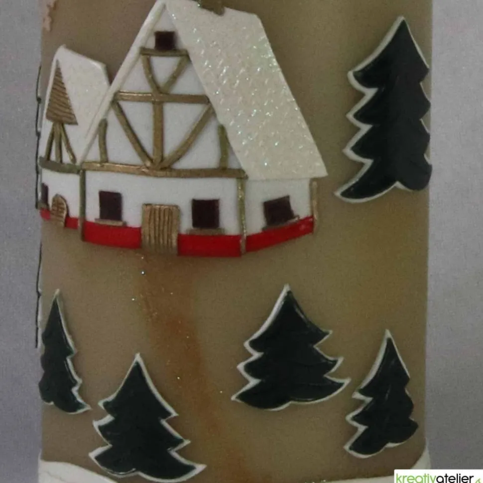 Die Winterkerze wird in meinem Atelier individuell für Sie gefertigt. Die Kerze ist 200 mm hoch, 80 mm im Durchmesser und brennt 120 Stunden. Als Rohling verwende ich ausschließlich Qualitätskerzen mit RAL-Zertifikat, die in Deutschland nach traditionellen Verfahren gezogen werden.