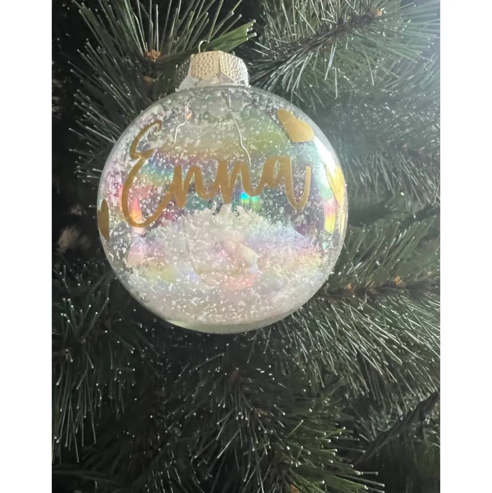Wir Zaubern dir deine individuelle und einzigartige Christbaumkugel mit Wunschnamen und Optional mit Sternen, Schneeflocken, Herzen oder Pfoten.