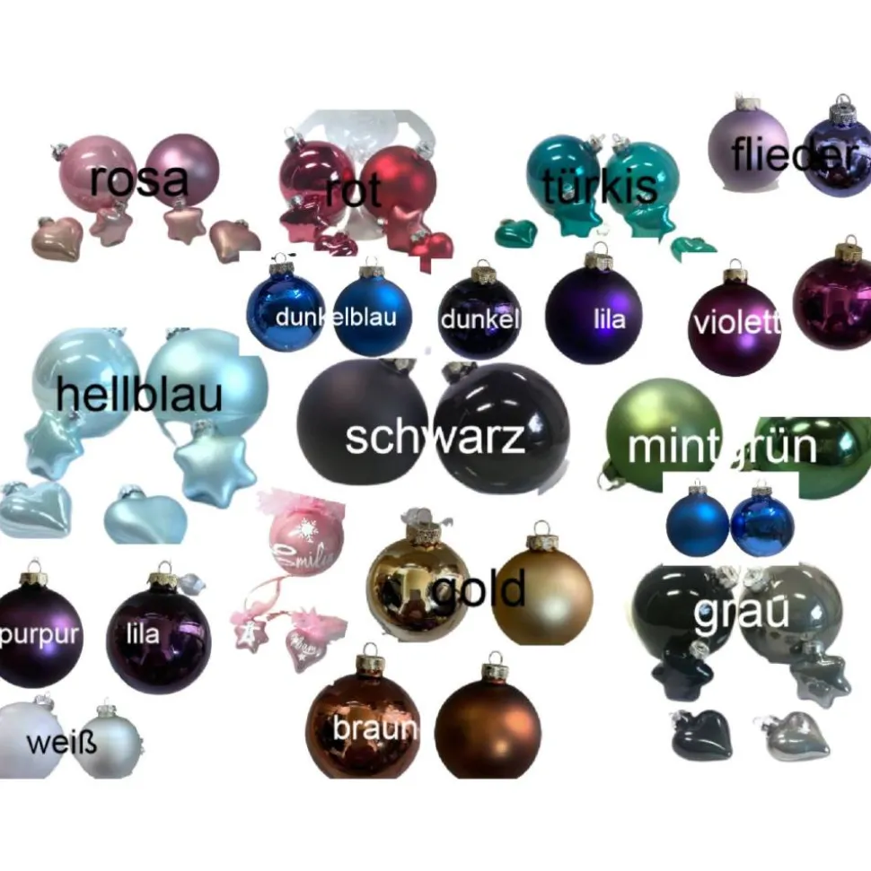 | Style | Glas Kugel hellblau glänzend 8 cm, Glas Kugel hellblau matt 8 cm, Glas Kugel mintgrün matt 6 cm, Glas Kugel rosa glänzend 8 cm, Glas Kugel rosa matt 8 cm, Glas Kugel rot glänzend 8 cm, Glas Kugel rot matt 8 cm, Glas Kugel türkis 8 cm |