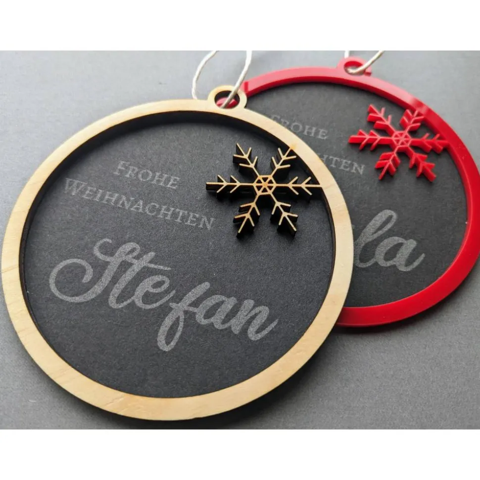 In dieser festlichen Jahreszeit sind Weihnachtsbaumkugeln und Tannenbaumschmuck unverzichtbar. Verleihe deinem Baum und deinem Zuhause den perfekten Glanz und die festliche Atmosphäre, die Weihnachten so besonders macht, mit unseren einzigartigen, personalisierten Weihnachtskugeln aus Holz und Acryl.