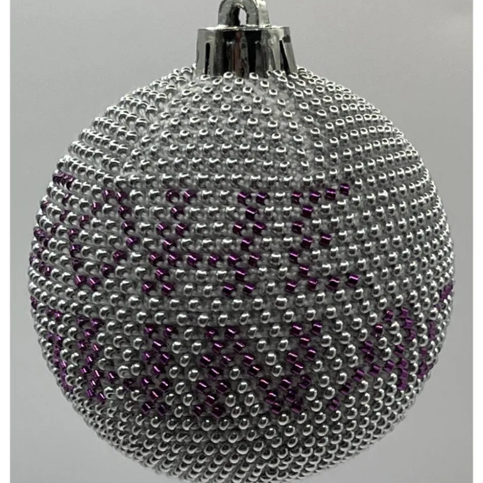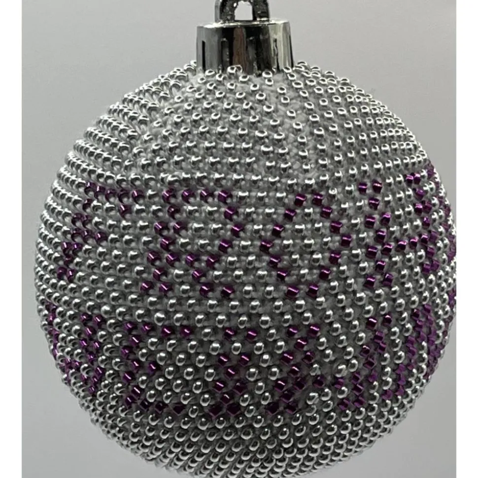 Es werden Kunststoff Weihnachtskugeln mit aufgefädelten Glasperlen umhäkelt.