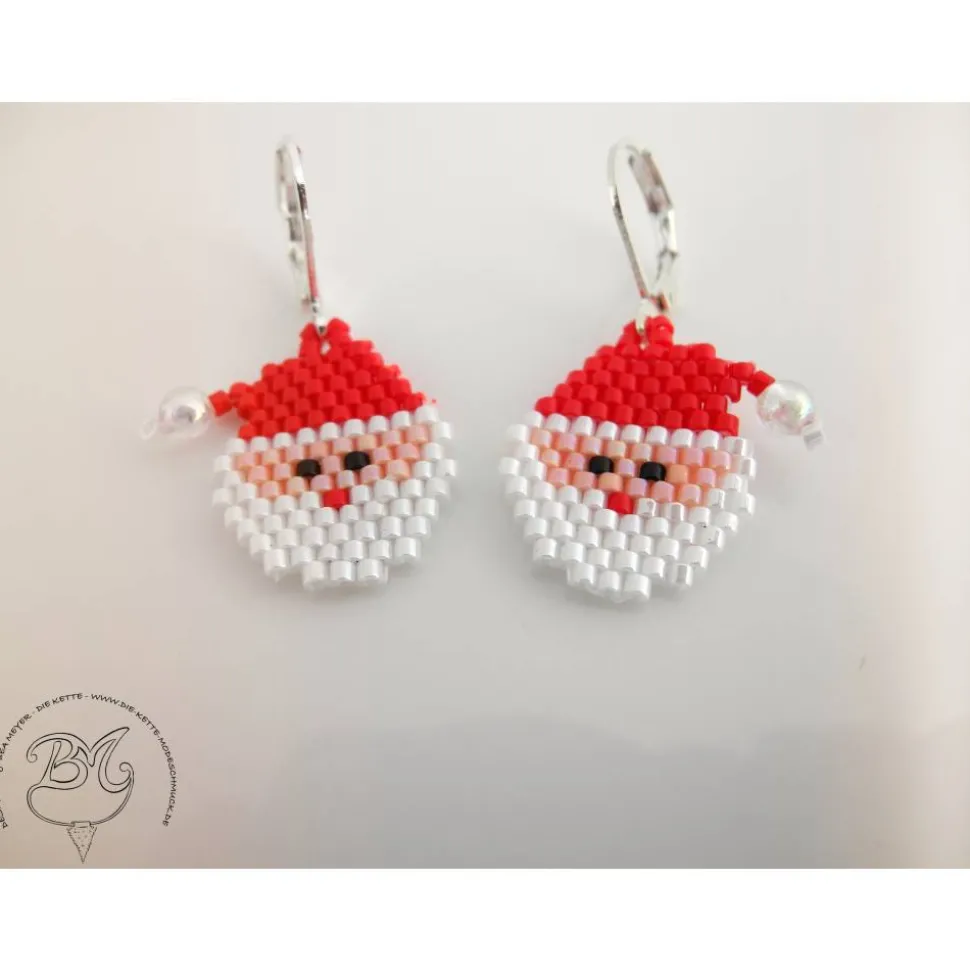 Weihnachtsmann Ohrhänger aus kleinsten Glasperlen gefädelt entstehen diese netten Nikolaus Ohrhänger. Obwohl es Glasperlen sind, haben die Ohrhänger ein geringes Gewicht und sind sehr leicht aber robust. Hier wird jedes Perlchen einzeln gefädelt und zu diesen netten Ohrhängern verarbeitet. Der Nikolauskopf ist 1cm breit und ca 2 cm hoch dann noch die Edelstahlbrisur sind dann zusammen ca 4 cm. Die Edelstahlbrisur ist für Allergiker geeignet.