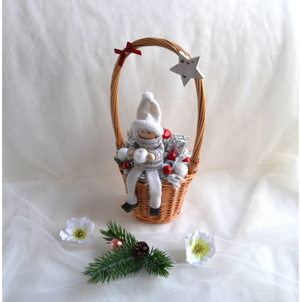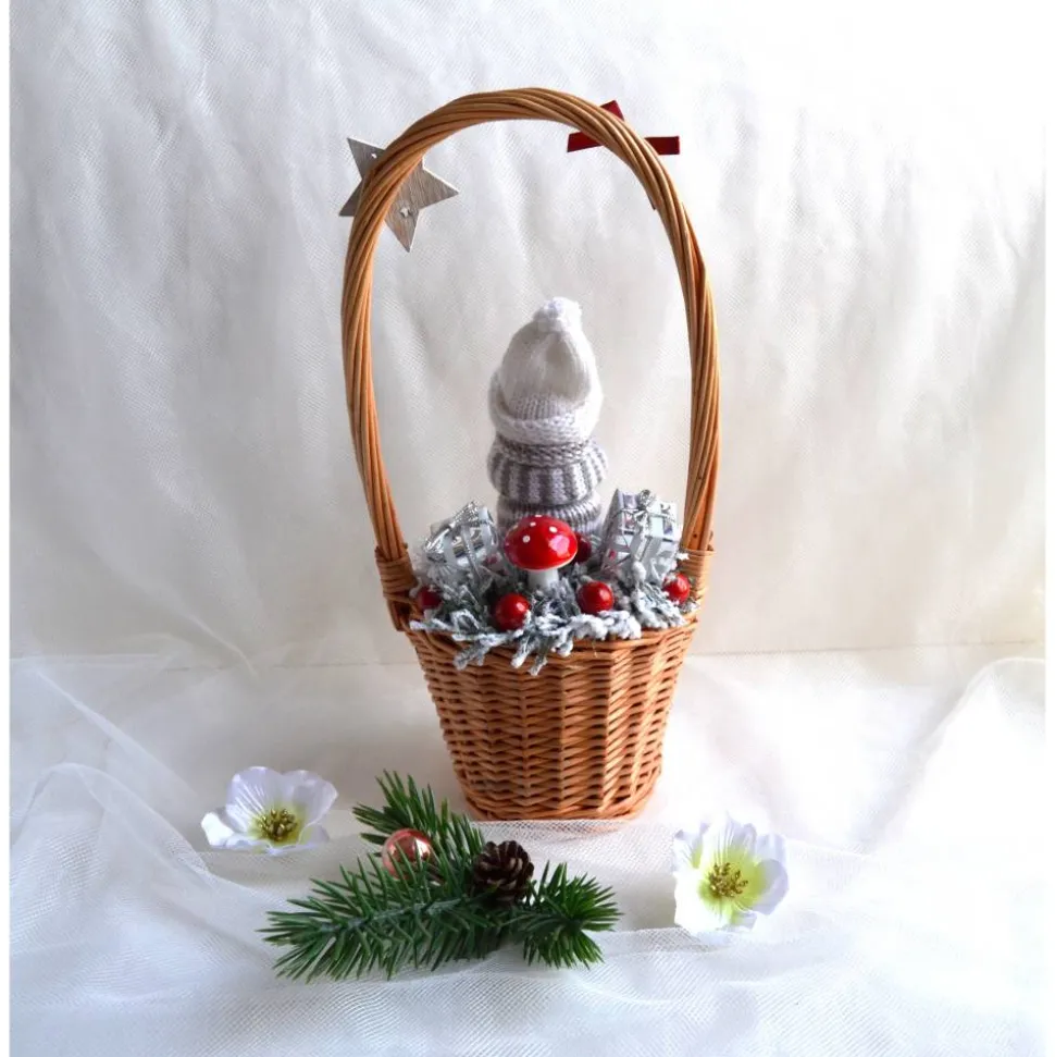 Material: Baumwolle, Holz, Satinschleife, Korb, Dekoteile, Kunsttanne