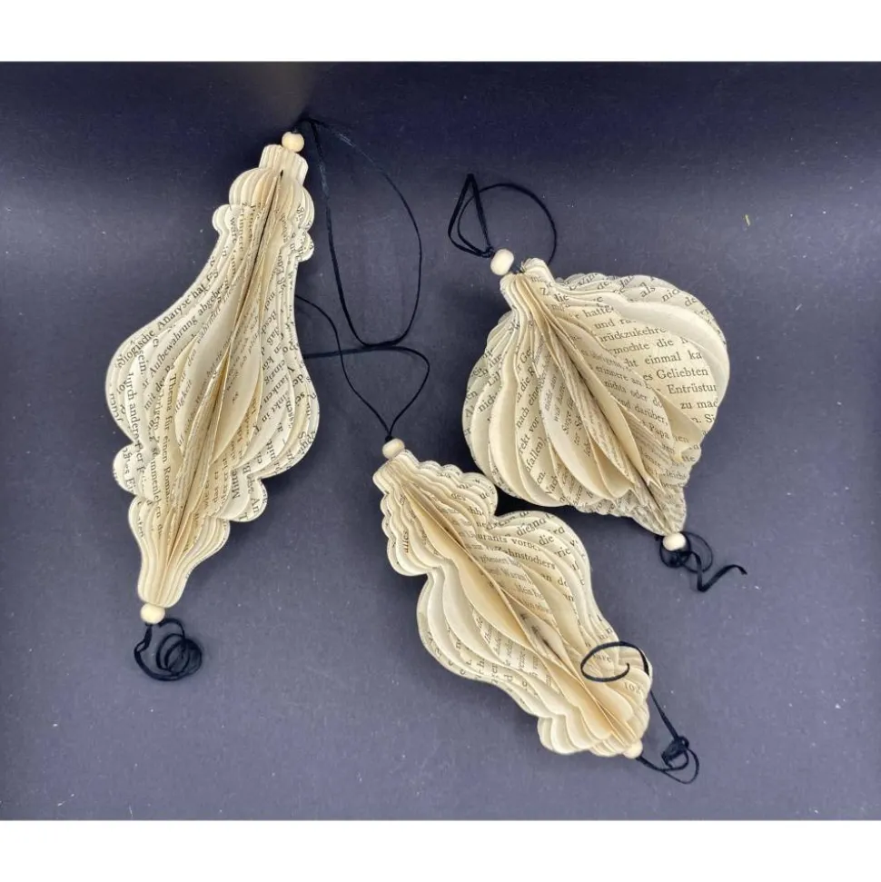 Weihnachtsschmuck aus Papier alte Buchseiten Upcycling Wabenoptik Christbaumschmuck
