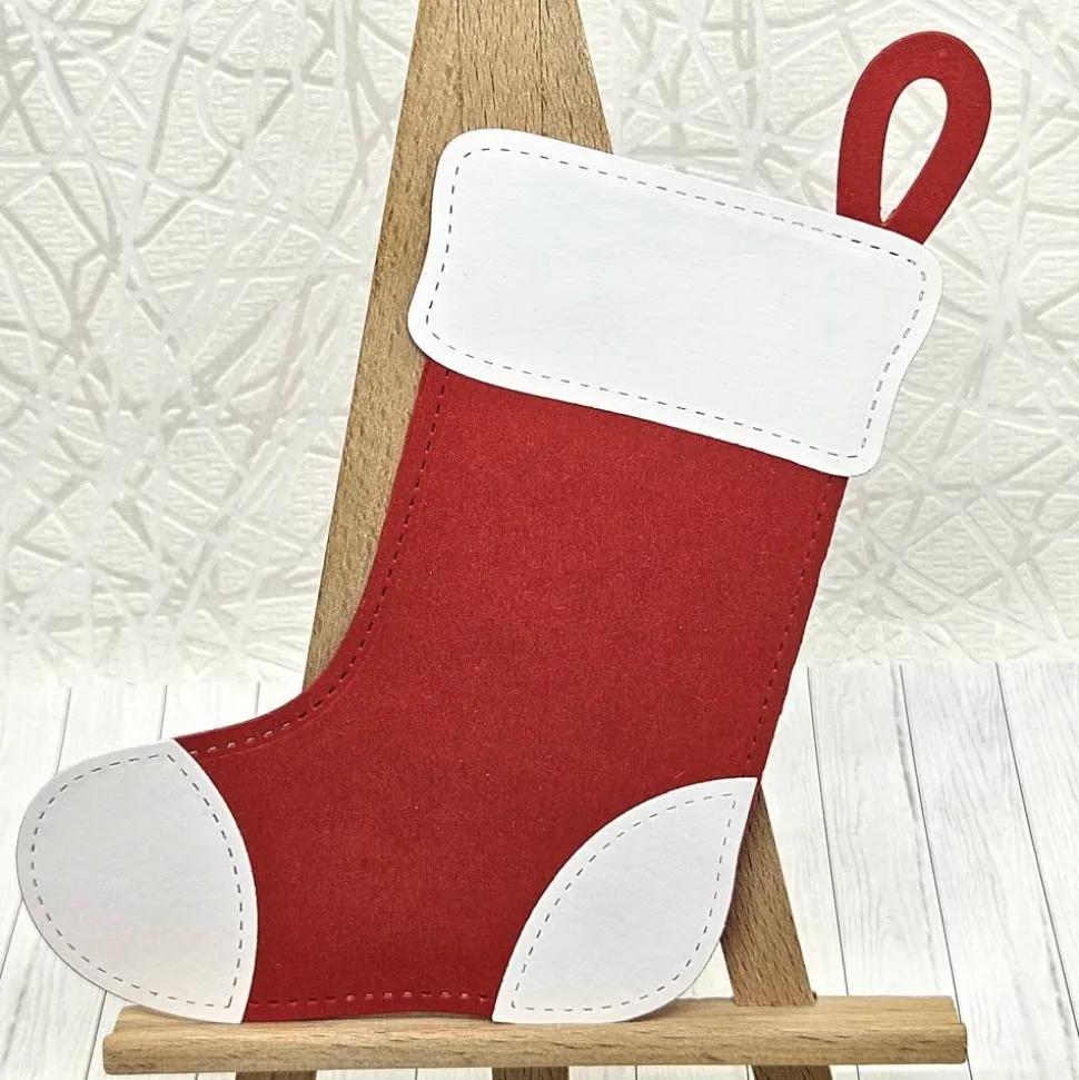 Diese handgefertigte Gutscheinverpackung in Form einer klassischen roten Weihnachtssocke ist ein liebevolles Detail für das Fest. Gefertigt aus stabilem 300 g/m² Fotokarton, überzeugt sie durch ihre hochwertige Verarbeitung und festliche Farbgestaltung in Rot und Weiß.