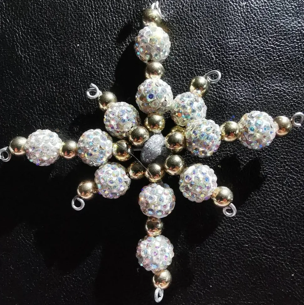 Die Sterne werden aus qualtitativ hochwertigen Shamballa-Perlen und kleinen Metallperlen hergestellt.